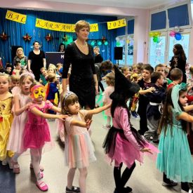 W tamtych latach dominował styl disco: błyszczące materiały, lateksowe legginsy, cekiny, tiulowe spódnice itp. Podczas balu dzieci prezentowały swoje umiejętności taneczne przy dźwiękach muzyki disco. Kolorowe pociągi, szalone pląsy przy muzyce oraz nauka tańca i układów tanecznych prowadzone przez Pana Mateusza wprawiły wszystkich w karnawałowy nastrój.