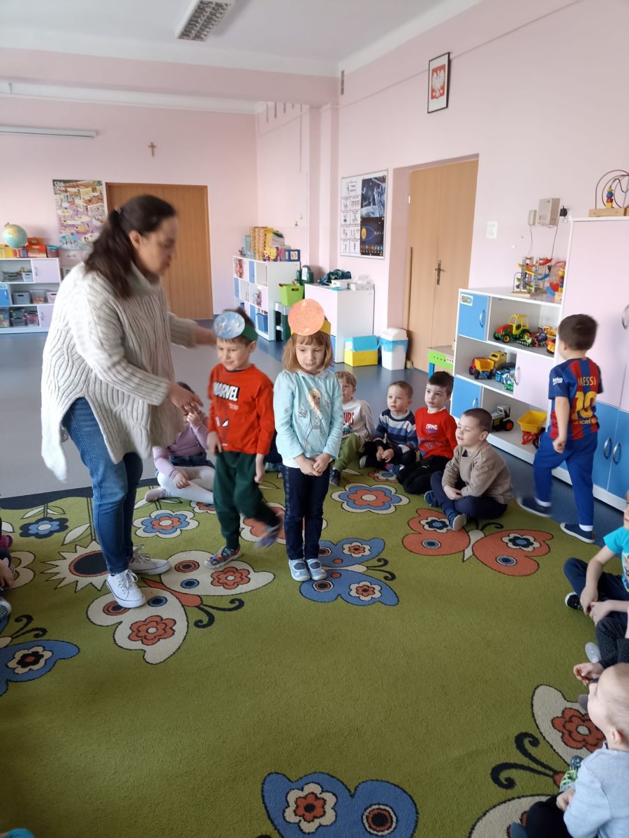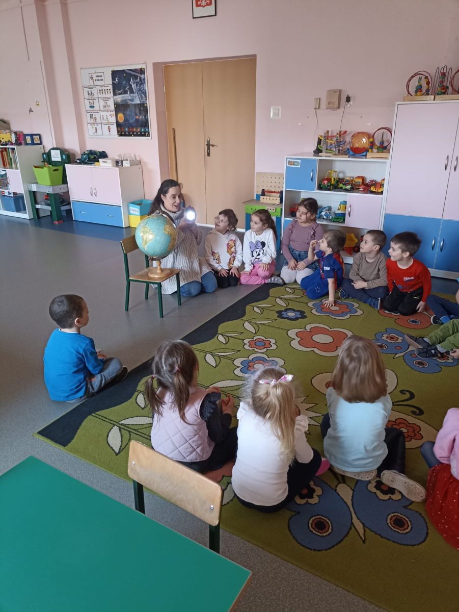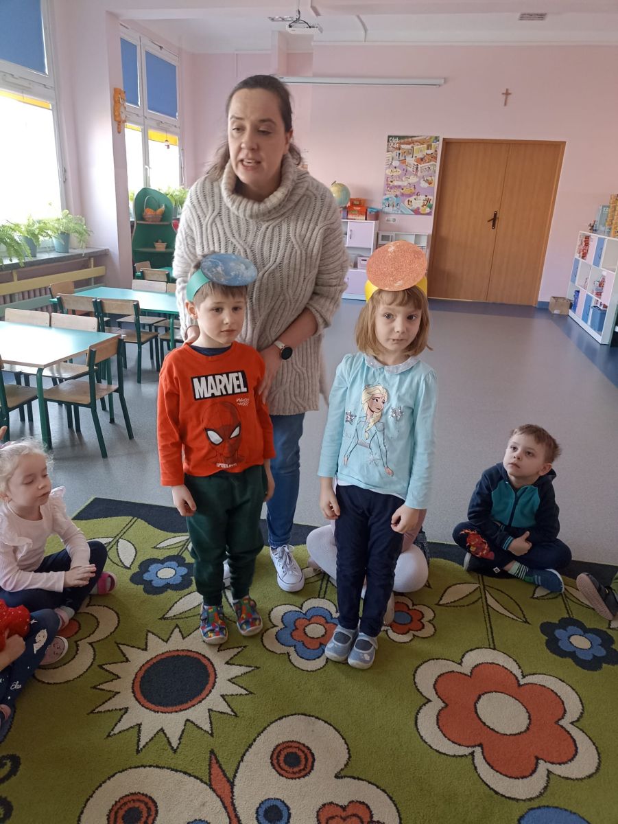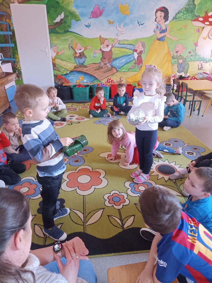 W czwartek 20.02.2025r. Motylki zrealizowały kolejne zadanie, tym razem było, to działanie z kręgu I- Postaw Na Patriotyzm. Tego dnia dzieci zostały zapoznane z postacią Mikołaja Kopernika i jego teorią heliocentryczną, w ramach tematu: " Sławnych Polaków znamy- i ich dokonania doceniamy" Podczas zajęć Motylki brały udział w różnych doświadczeniach, mających na celu wyjaśnić wybrane zjawiska przyrodnicze. Dzieci dowiedziały się dlaczego astronauci muszą mieć specjalne kombinezony podczas podróży kosmicznej, jak działa rakieta, czy księżyc świeci swoim własnym światłem oraz jak to się dzieje, że w danej chwili w jednym miejscu jest noc, a w innym dzień. Po wykonaniu tych ciekawych doświadczeń Motylki relaksowały się przy dźwiękach wibracji kosmosu, nagranych przez sondę Voyager.