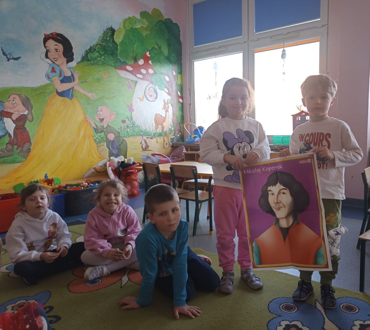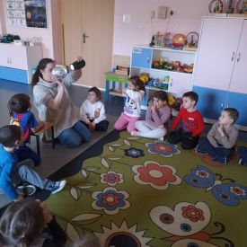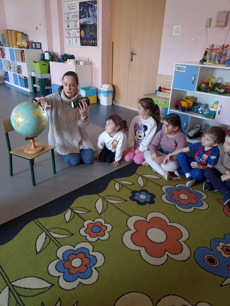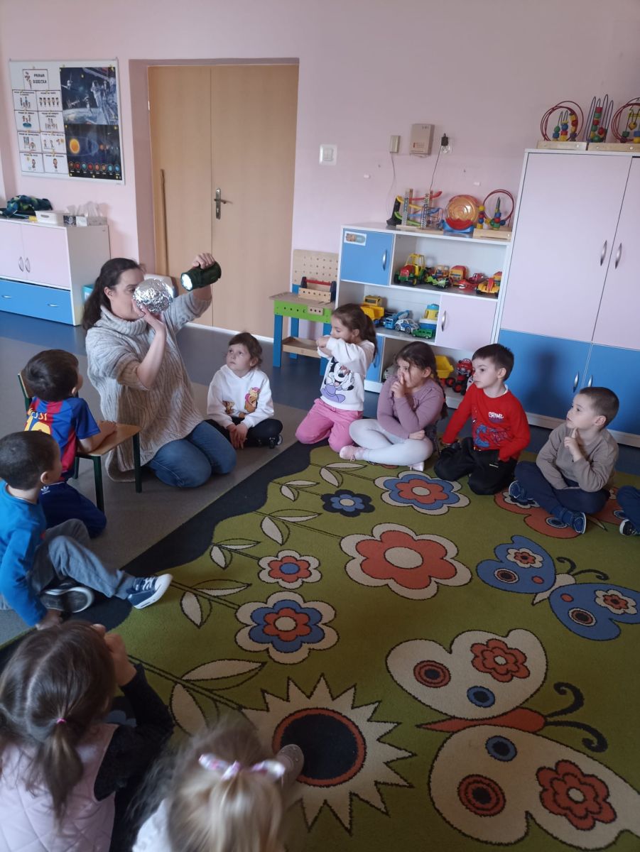 W czwartek 20.02.2025r. Motylki zrealizowały kolejne zadanie, tym razem było, to działanie z kręgu I- Postaw Na Patriotyzm. Tego dnia dzieci zostały zapoznane z postacią Mikołaja Kopernika i jego teorią heliocentryczną, w ramach tematu: " Sławnych Polaków znamy- i ich dokonania doceniamy" Podczas zajęć Motylki brały udział w różnych doświadczeniach, mających na celu wyjaśnić wybrane zjawiska przyrodnicze. Dzieci dowiedziały się dlaczego astronauci muszą mieć specjalne kombinezony podczas podróży kosmicznej, jak działa rakieta, czy księżyc świeci swoim własnym światłem oraz jak to się dzieje, że w danej chwili w jednym miejscu jest noc, a w innym dzień. Po wykonaniu tych ciekawych doświadczeń Motylki relaksowały się przy dźwiękach wibracji kosmosu, nagranych przez sondę Voyager.