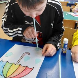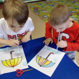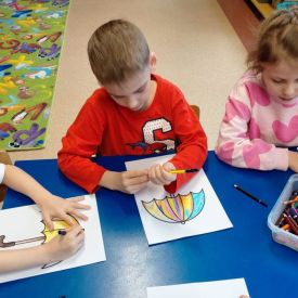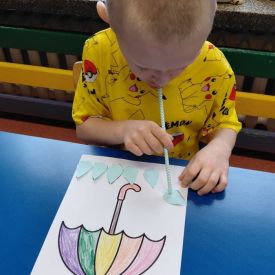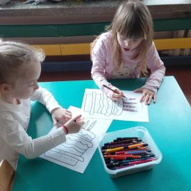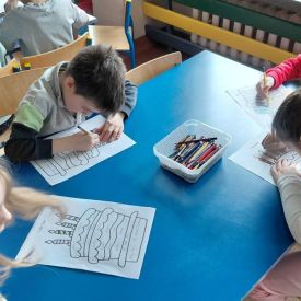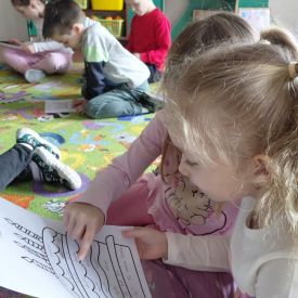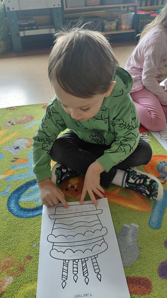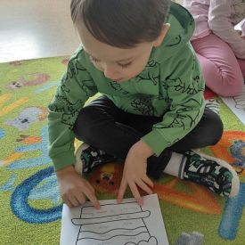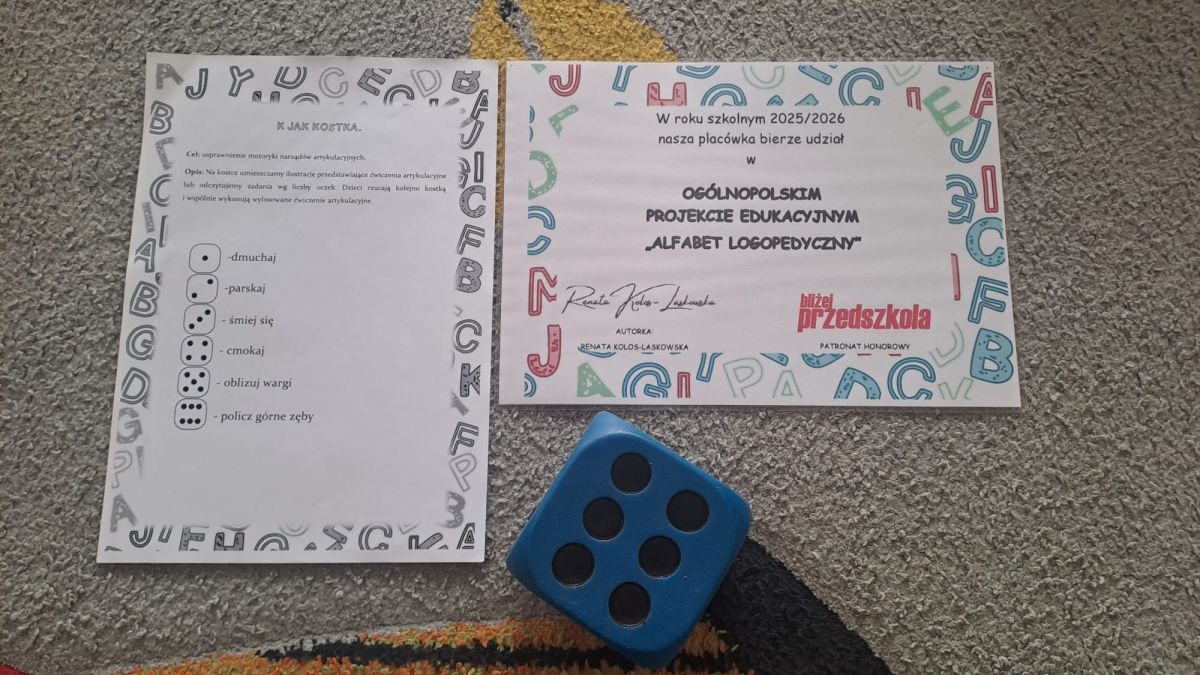 W ramach projektu edukacyjnego „Alfabet Logopedyczny” grupa „Sówek” uczestniczyła w różnorodnych aktywnościach rozwijających kompetencje językowe, słuchowe i wzrokowe. Przedszkolaki zrealizowały z projektu następujące zadania: K- jak kostka, T – jak tort, D – jak deszcz. Zajęcia w atrakcyjny sposób wspierały rozwój mowy oraz percepcję słuchową i wzrokową.