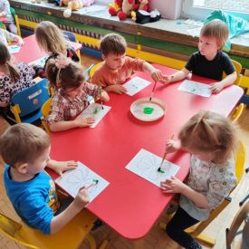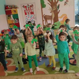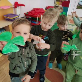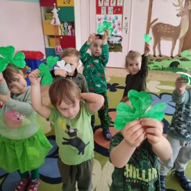 Pierwszy dzień wiosny w grupie Biedronek został urozmaicony obchodami Dnia Świętego Patryka. Dzieci "powędrowały" prosto do Irlandii, aby dowiedzieć się jak wygląda flaga tego kraju. Obejrzały film edukacyjny „ Ola i Dzień Świętego Patryka" i zapoznały się z symbolami związanymi z tym świętem.