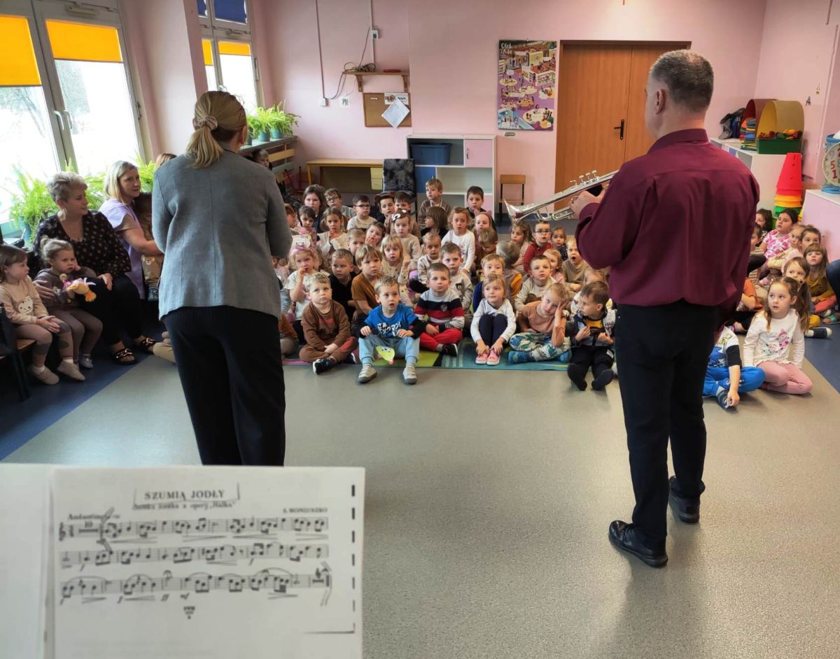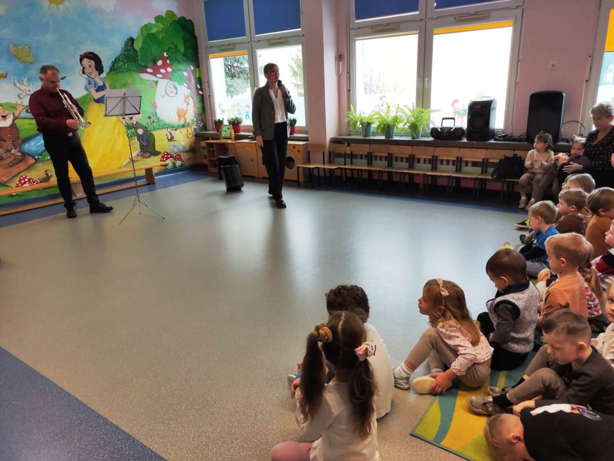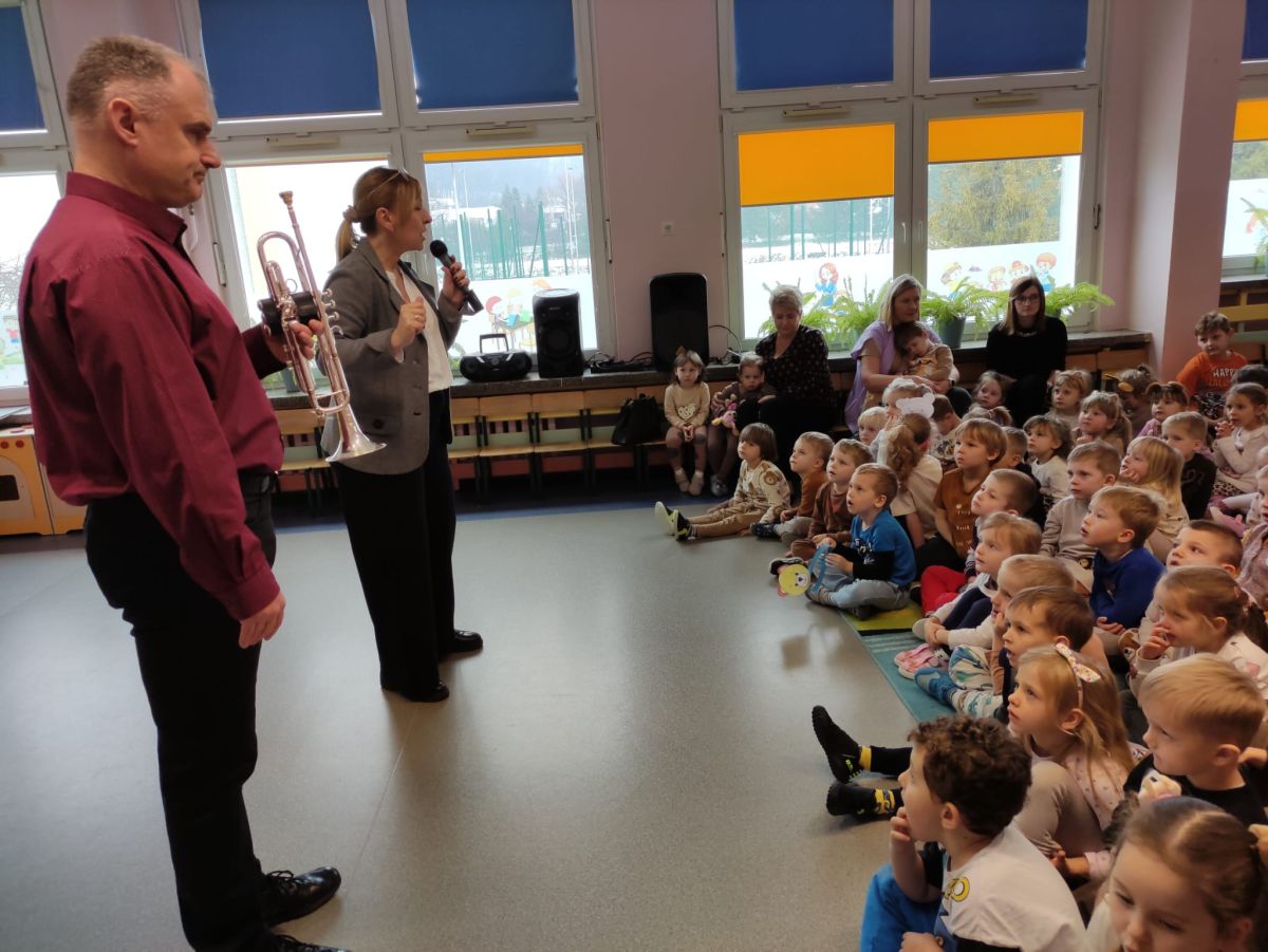 "Koncert dla młodych patriotów"- taki tytuł nosił listopadowy koncert muzyczny w wykonaniu gości z Filharmonii Świętokrzyskiej. Dzieci wysłuchały dedykowanych dla naszej ojczyzny pieśni, piosenek oraz utworów instrumentalnych, które rozbudzą w najmłodszym pokoleniu miłość i poszanowanie dla Polski.