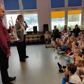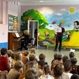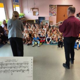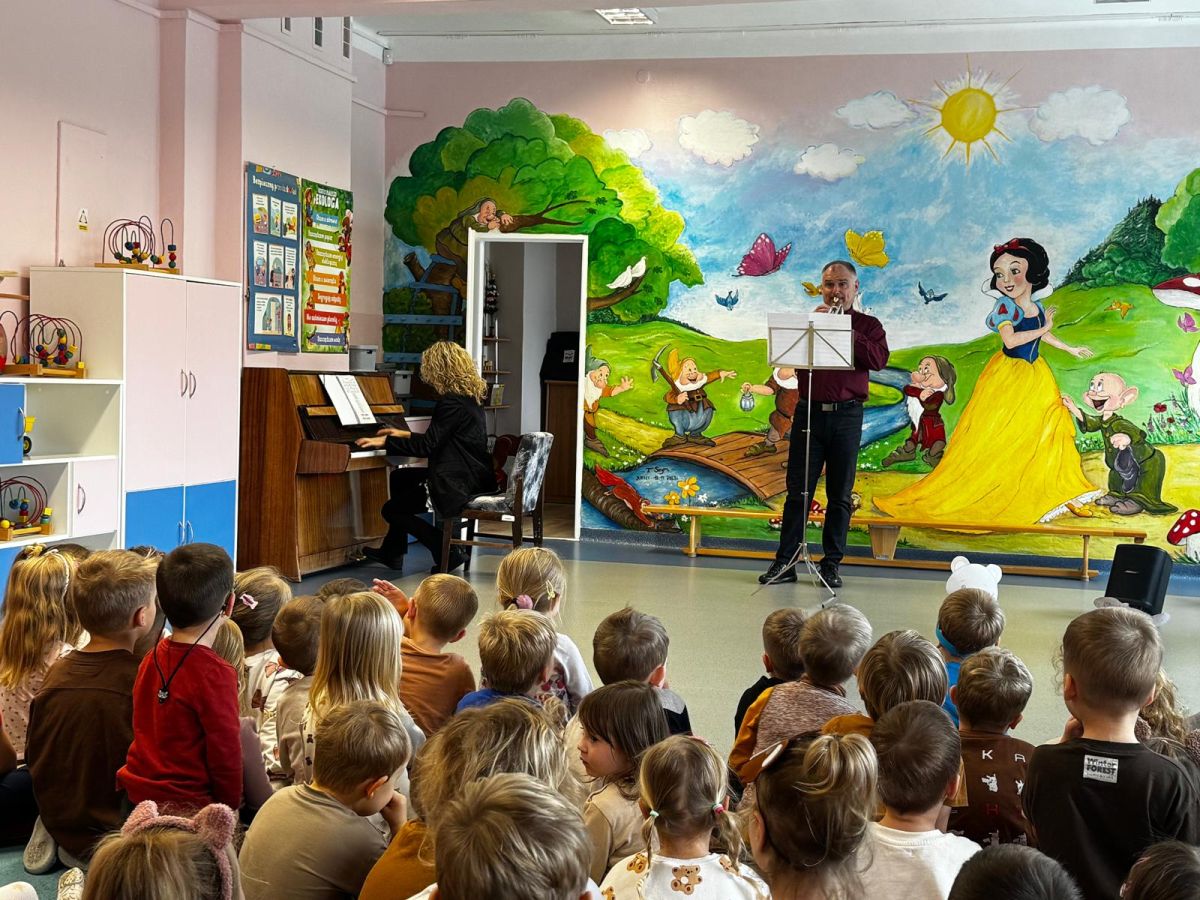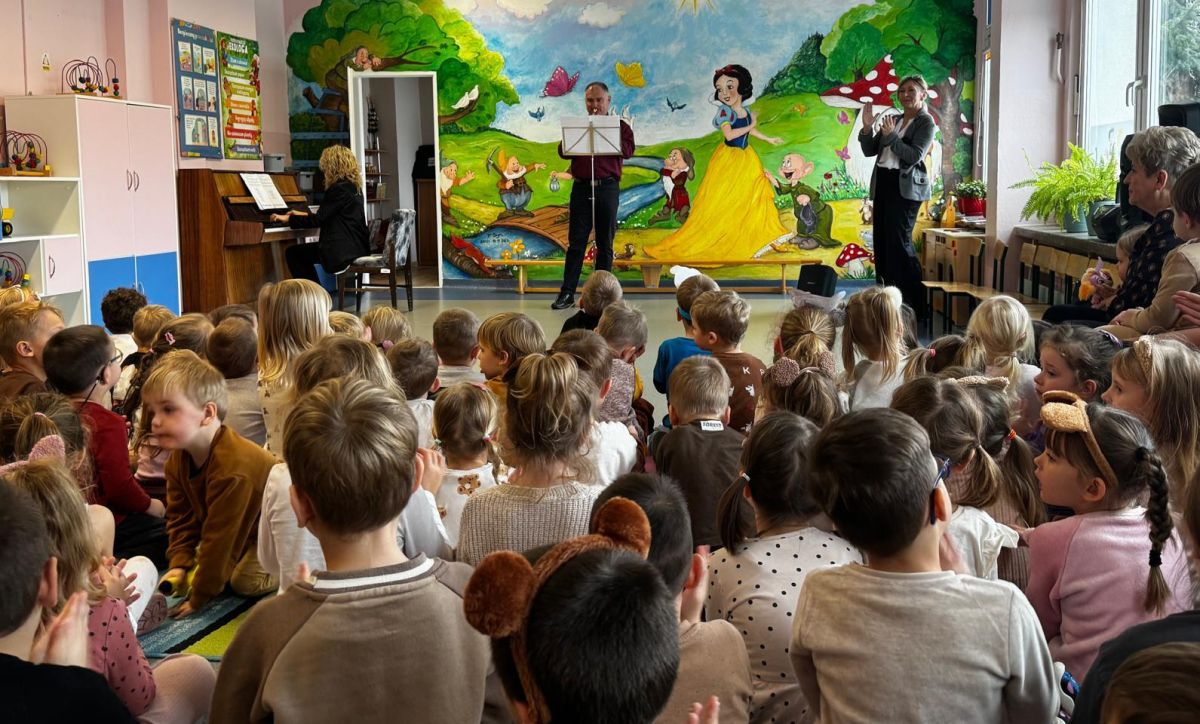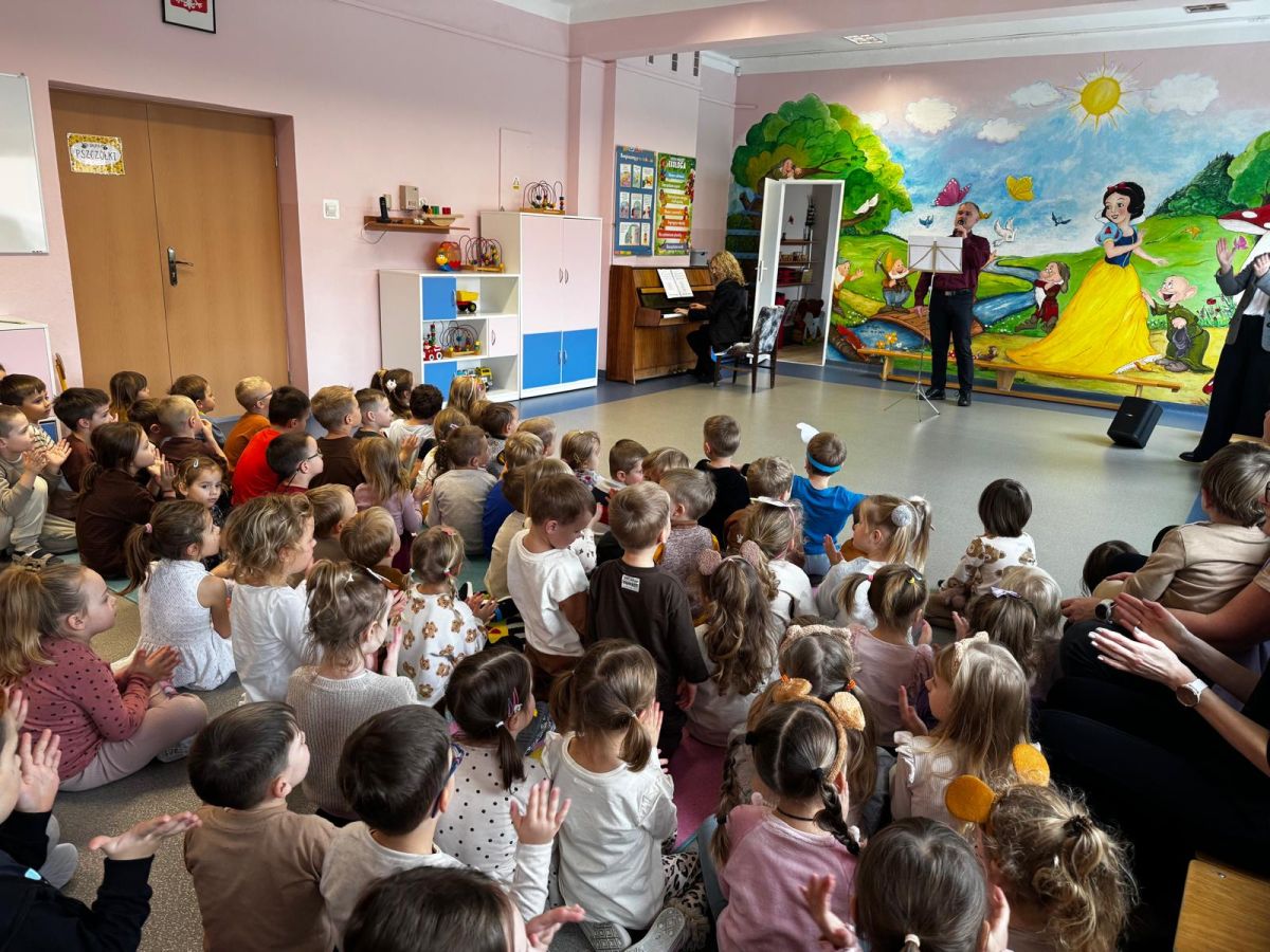 "Koncert dla młodych patriotów"- taki tytuł nosił listopadowy koncert muzyczny w wykonaniu gości z Filharmonii Świętokrzyskiej. Dzieci wysłuchały dedykowanych dla naszej ojczyzny pieśni, piosenek oraz utworów instrumentalnych, które rozbudzą w najmłodszym pokoleniu miłość i poszanowanie dla Polski.