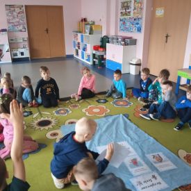 Nauczycielki przypomniały zasady bezpieczeństwa podczas zabaw zimowych, m.in.: jazdy na sankach, nartach, łyżwach, rzucania śnieżkami, w pobliżu miejsc ze zwisającymi soplami itp. zwróciły szczególną uwagę na zakaz zabawy na zamarzniętych zbiornikach wodnych. Przedszkolaki przypomniały sobie zasady poruszania się po drogach oraz używania odblasków, aby być widocznym uczestnikiem ruchu drogowego. Nauczycielki ostrzegały przed zjeżdżaniem z górek znajdujących się blisko ulic, udzieliły wskazówek jak bezpiecznie bawić się na śniegu i jak zachować się na kuligu. Zabawa „Tak – Nie” była okazją do podsumowania zasad bezpiecznej zabawy. Dzieci podnosiły uśmiechniętą lub smutną buźkę w odpowiedzi na czytane przez nauczyciela zdania.