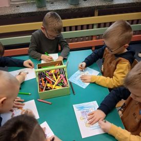 Na zakończenie i dla lepszego utrwalenia wiedzy każdy pokolorował wybraną przez siebie kolorowankę przedstawiającą zasady bezpiecznej zabawy. Przedszkolaki aktywnie i z dużym zainteresowaniem uczestniczyły w zajęciach.