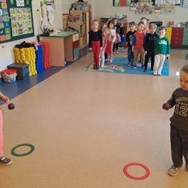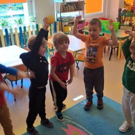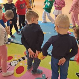 Sportowo” wykonywały ćwiczenia ruchowe według scenariusza „Wielkanoc”. Przedszkolaki