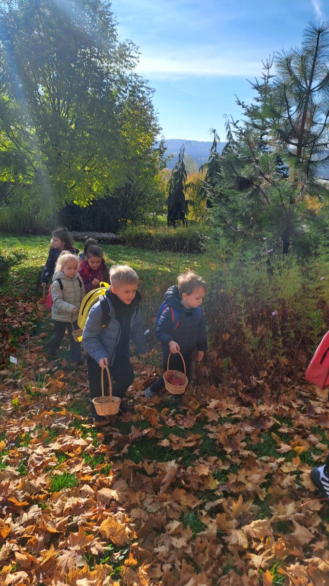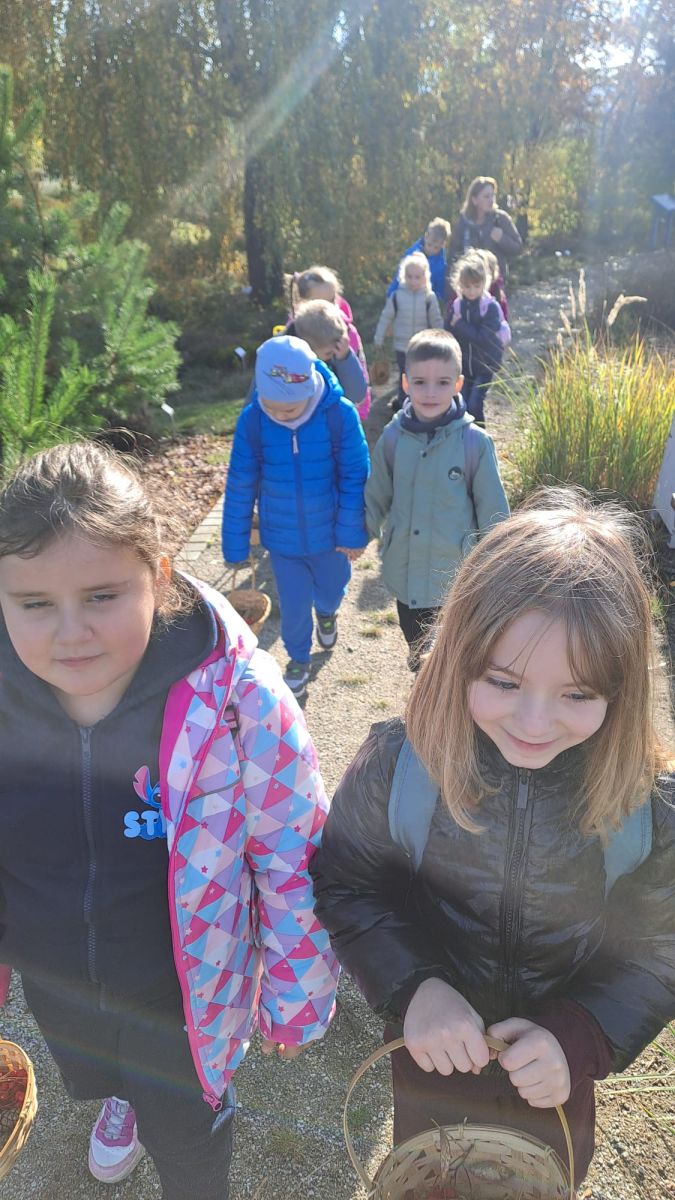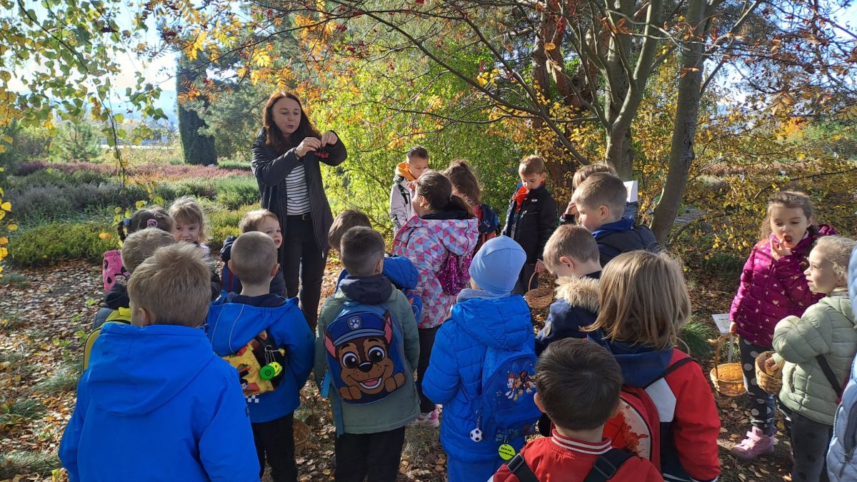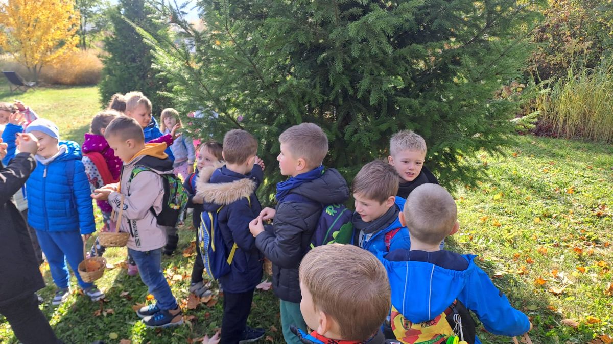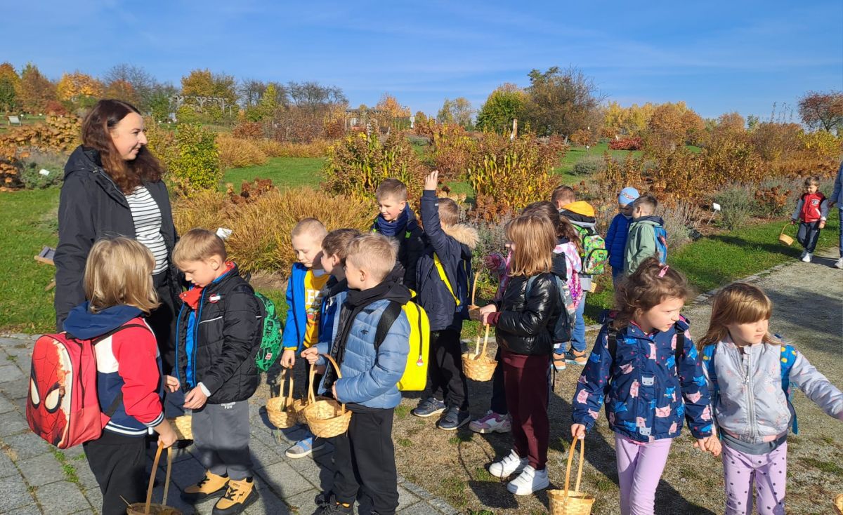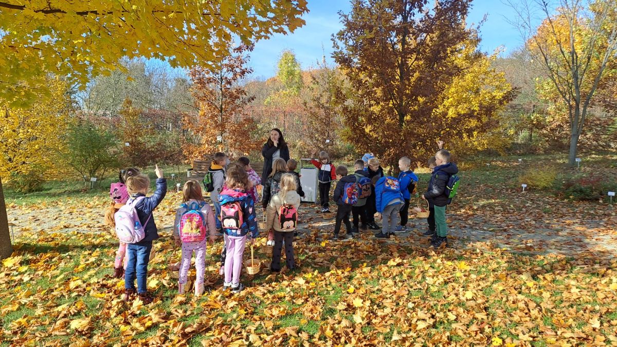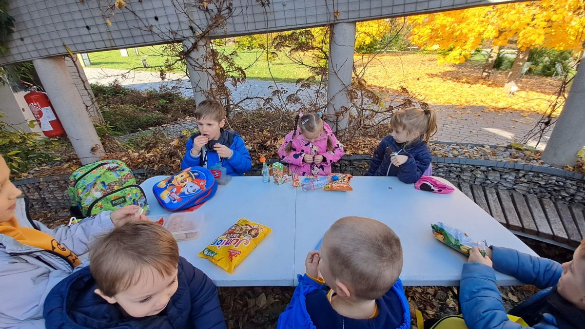 23 października 2025 r. dzieci z grupy „Sówek” wybrały się na pieszy rajd do Ogrodu Botanicznego w Kielcach. Przedszkolaki brały udział w zajęciach edukacyjnych „Zostań drzewoznawcą”. Podczas spaceru alejkami w ogrodzie, dzieci rozpoznawały popularne gatunki drzew, poznawały ciekawostki z nimi związane i znaczenie w przyrodzie i życiu człowieka oraz zbierały jesienne dary do koszyczków. Po skończonym spacerze zasiadły do wykonania pracy plastycznej „Jeżyk z darów jesieni”. Uwieńczeniem zajęć edukacyjnych był wspólny piknik wśród drzew i spadających kolorowych liści. Był to aktywnie i zdrowo spędzony czas na świeżym powietrzu w otoczeniu pięknej jesiennej przyrody.