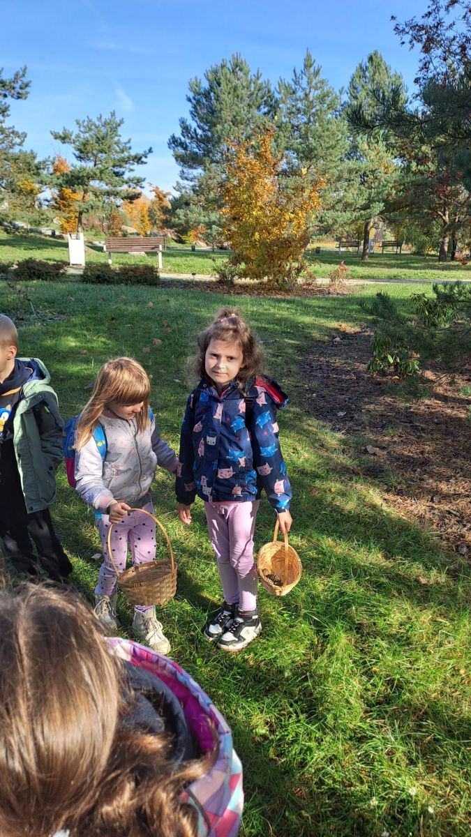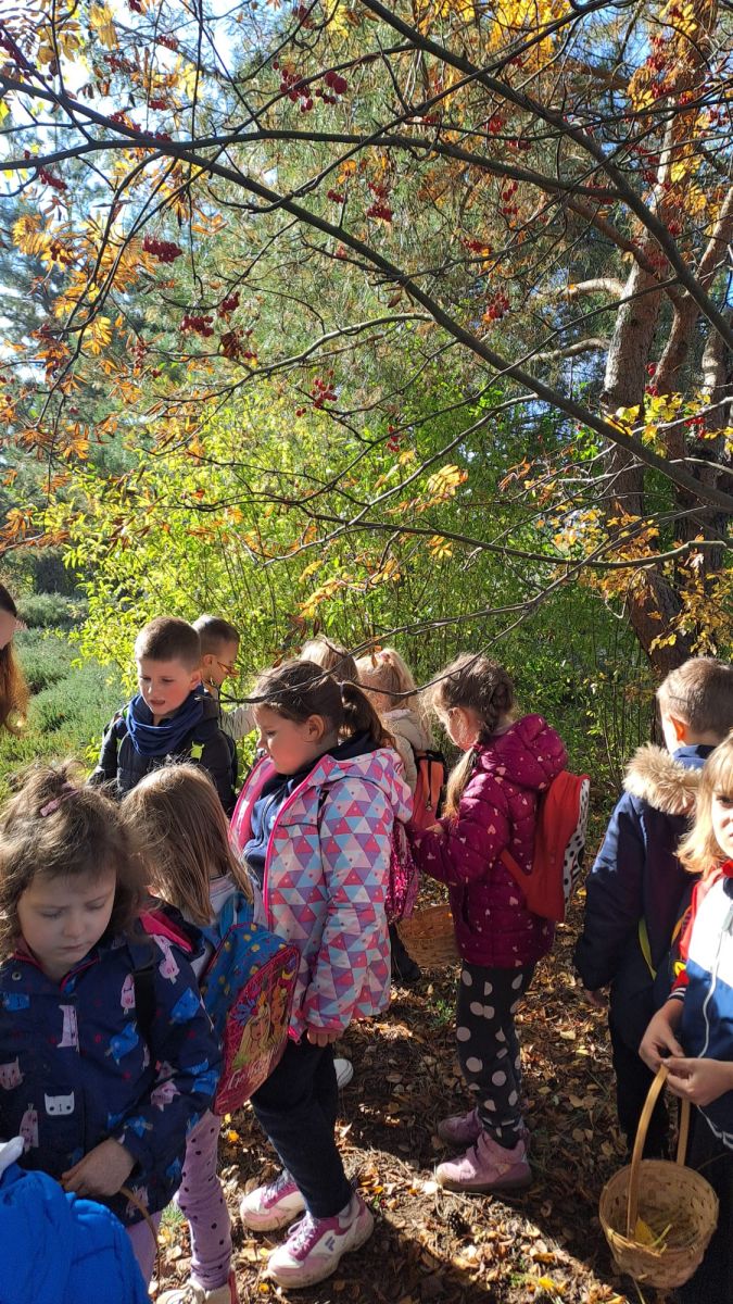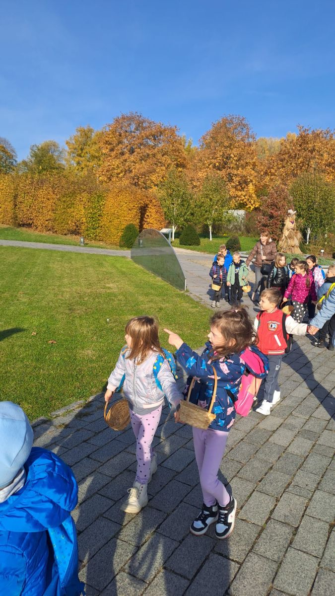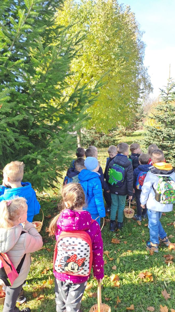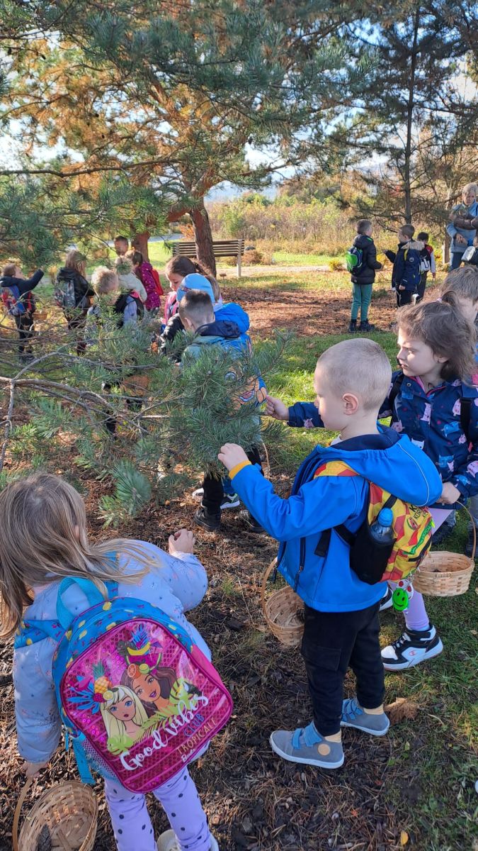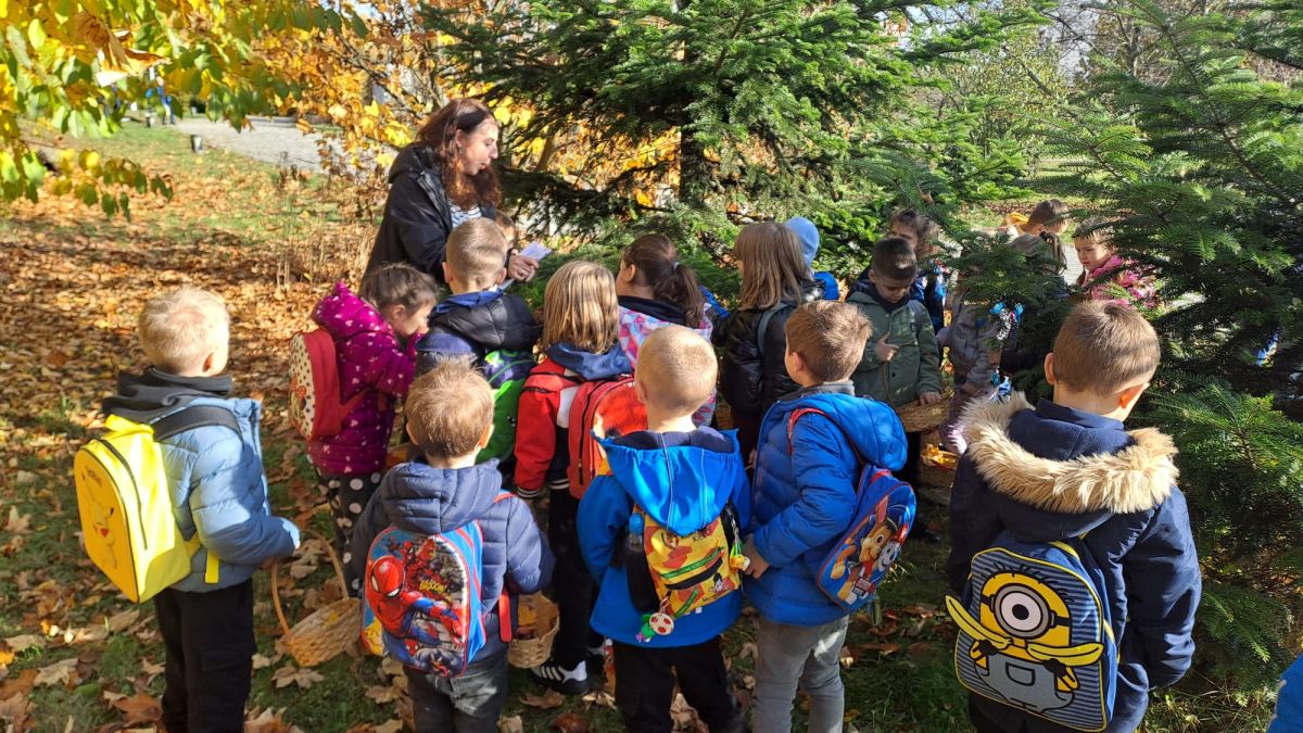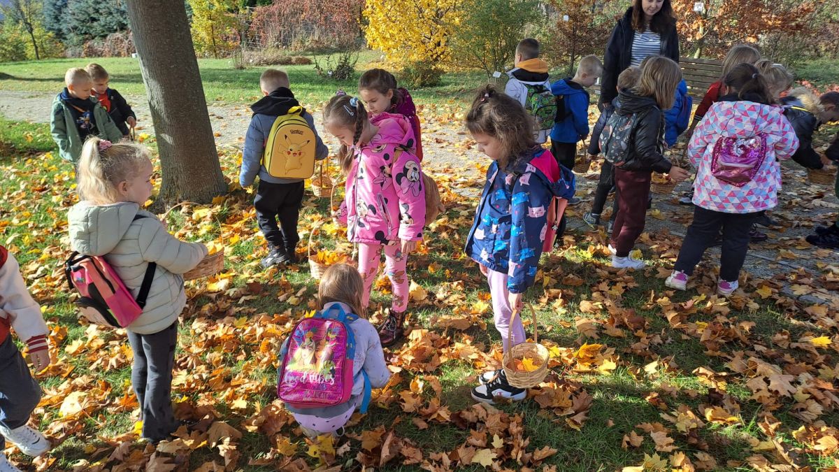 23 października 2025 r. dzieci z grupy „Sówek” wybrały się na pieszy rajd do Ogrodu Botanicznego w Kielcach. Przedszkolaki brały udział w zajęciach edukacyjnych „Zostań drzewoznawcą”. Podczas spaceru alejkami w ogrodzie, dzieci rozpoznawały popularne gatunki drzew, poznawały ciekawostki z nimi związane i znaczenie w przyrodzie i życiu człowieka oraz zbierały jesienne dary do koszyczków. Po skończonym spacerze zasiadły do wykonania pracy plastycznej „Jeżyk z darów jesieni”. Uwieńczeniem zajęć edukacyjnych był wspólny piknik wśród drzew i spadających kolorowych liści. Był to aktywnie i zdrowo spędzony czas na świeżym powietrzu w otoczeniu pięknej jesiennej przyrody.
