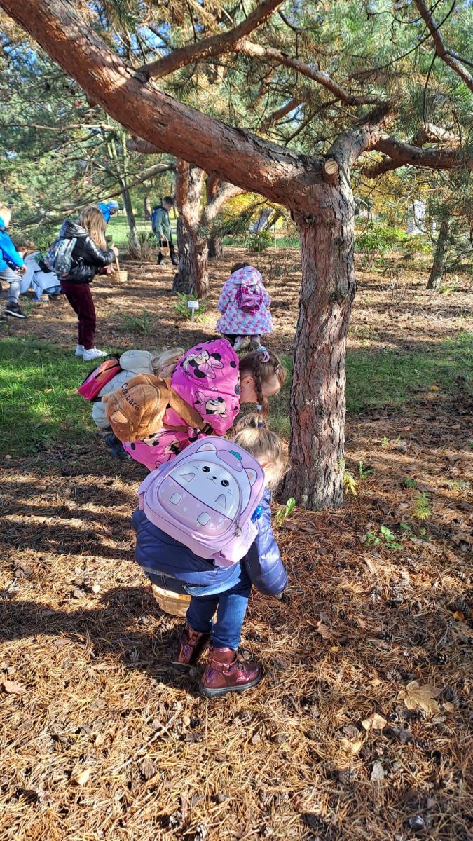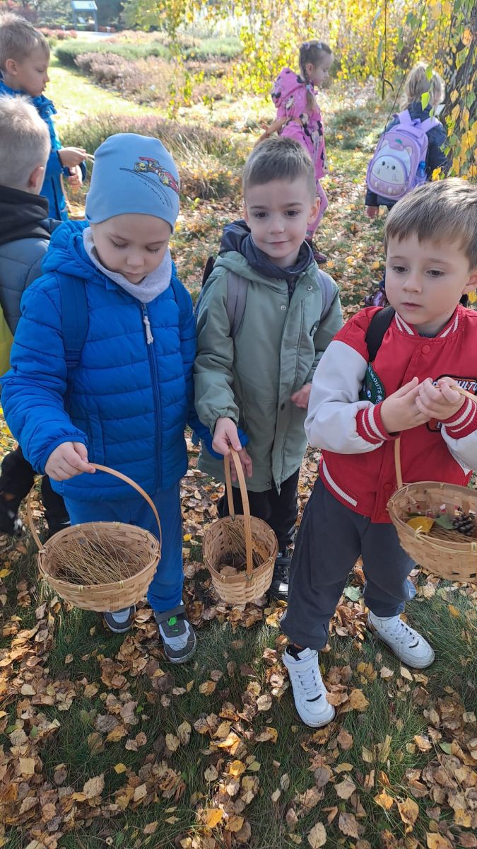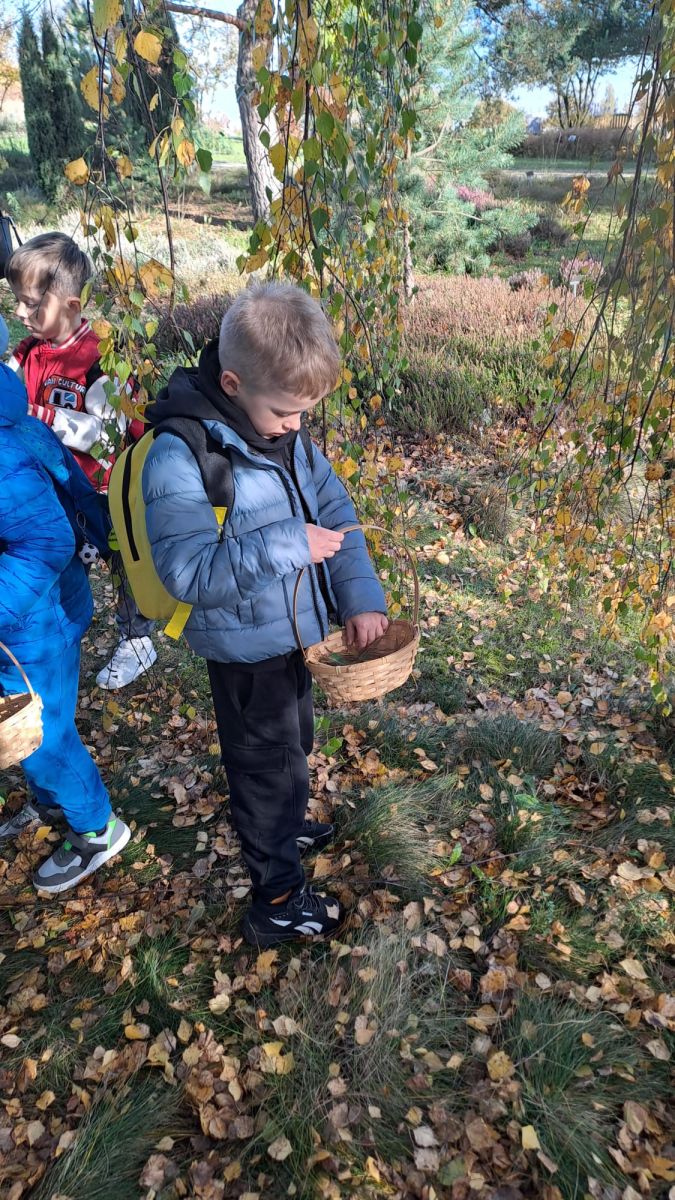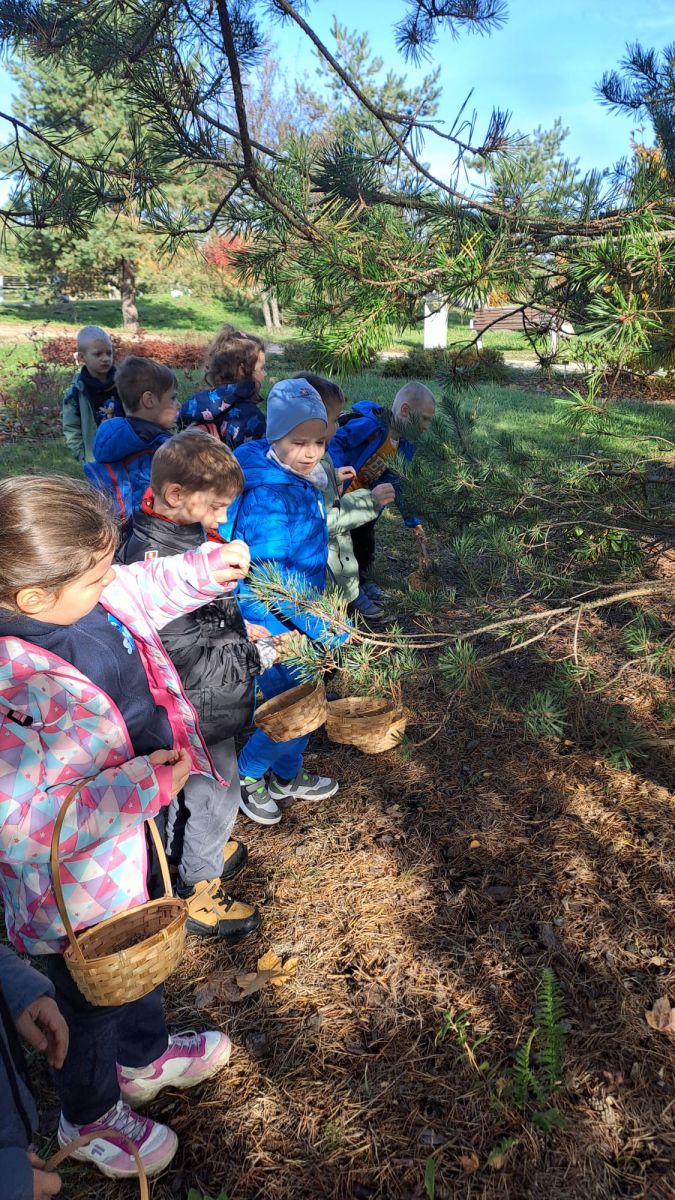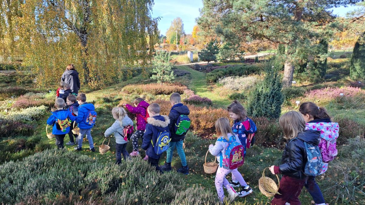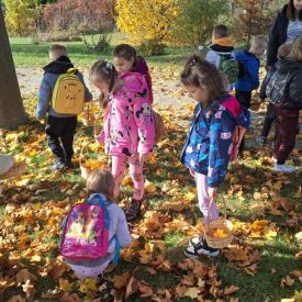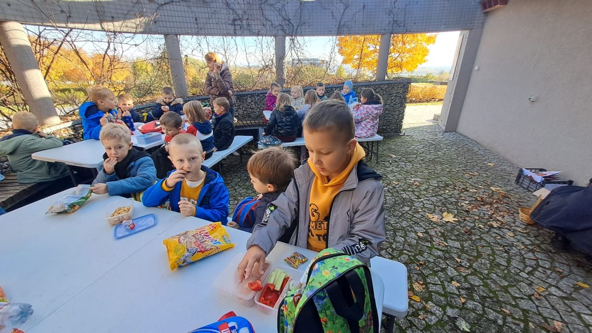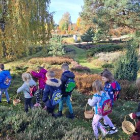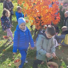 23 października 2025 r. dzieci z grupy „Sówek” wybrały się na pieszy rajd do Ogrodu Botanicznego w Kielcach. Przedszkolaki brały udział w zajęciach edukacyjnych „Zostań drzewoznawcą”. Podczas spaceru alejkami w ogrodzie, dzieci rozpoznawały popularne gatunki drzew, poznawały ciekawostki z nimi związane i znaczenie w przyrodzie i życiu człowieka oraz zbierały jesienne dary do koszyczków. Po skończonym spacerze zasiadły do wykonania pracy plastycznej „Jeżyk z darów jesieni”. Uwieńczeniem zajęć edukacyjnych był wspólny piknik wśród drzew i spadających kolorowych liści. Był to aktywnie i zdrowo spędzony czas na świeżym powietrzu w otoczeniu pięknej jesiennej przyrody.