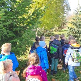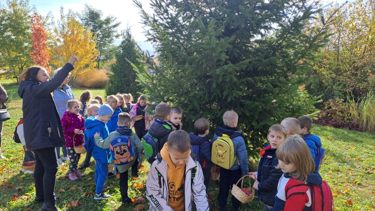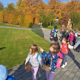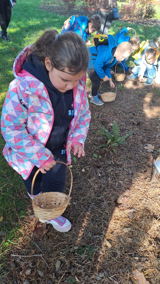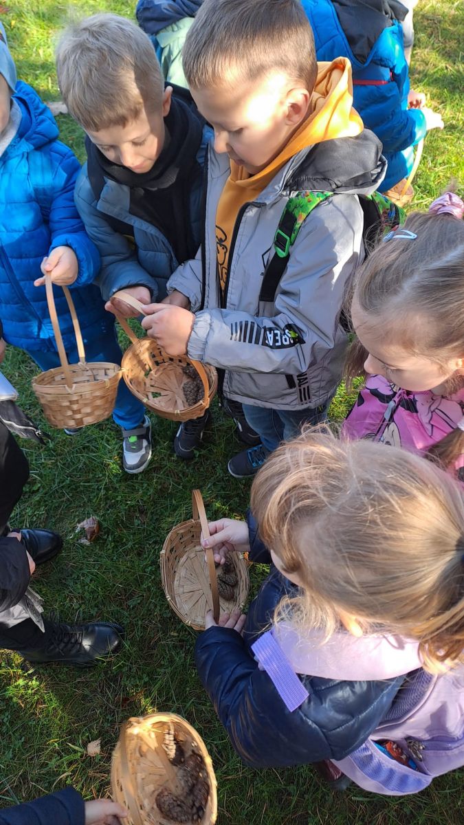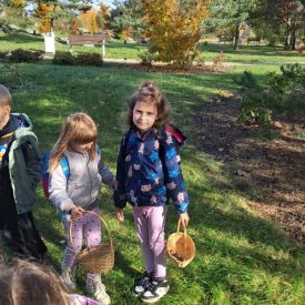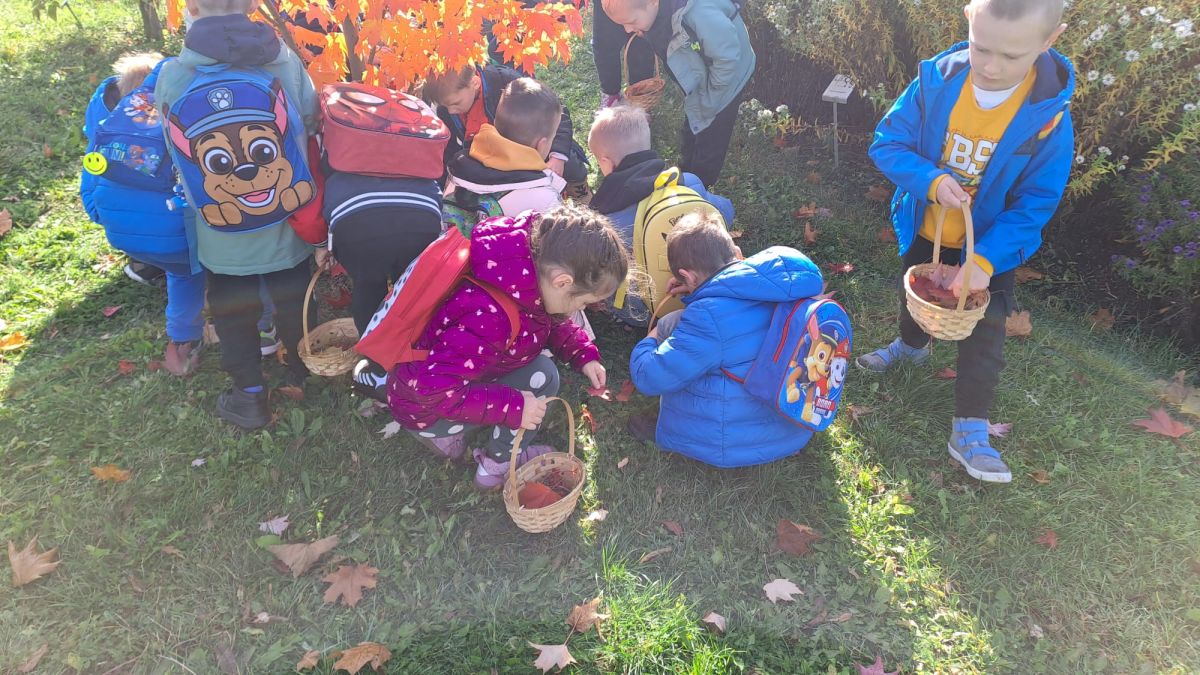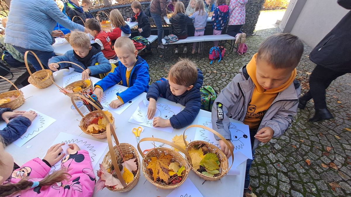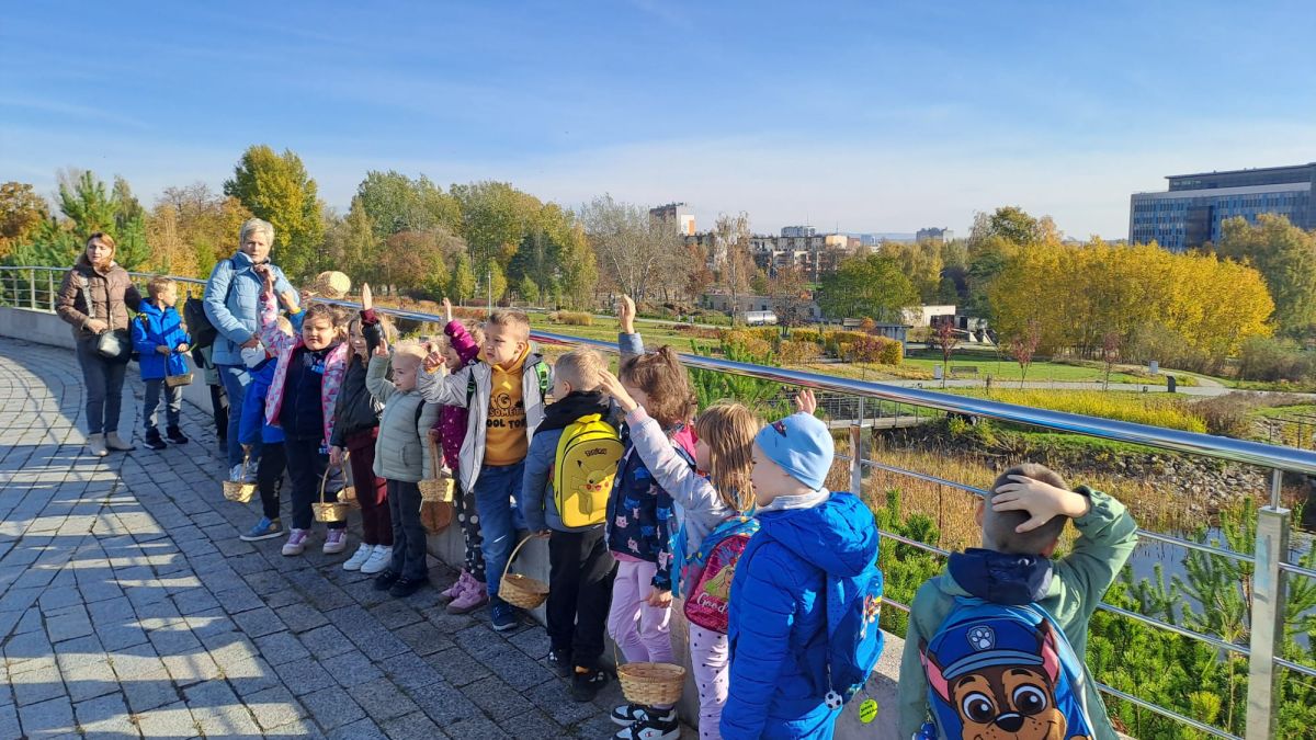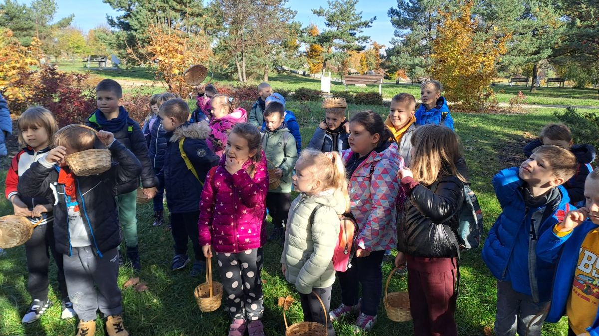 23 października 2025 r. dzieci z grupy „Sówek” wybrały się na pieszy rajd do Ogrodu Botanicznego w Kielcach. Przedszkolaki brały udział w zajęciach edukacyjnych „Zostań drzewoznawcą”. Podczas spaceru alejkami w ogrodzie, dzieci rozpoznawały popularne gatunki drzew, poznawały ciekawostki z nimi związane i znaczenie w przyrodzie i życiu człowieka oraz zbierały jesienne dary do koszyczków. Po skończonym spacerze zasiadły do wykonania pracy plastycznej „Jeżyk z darów jesieni”. Uwieńczeniem zajęć edukacyjnych był wspólny piknik wśród drzew i spadających kolorowych liści. Był to aktywnie i zdrowo spędzony czas na świeżym powietrzu w otoczeniu pięknej jesiennej przyrody.