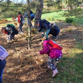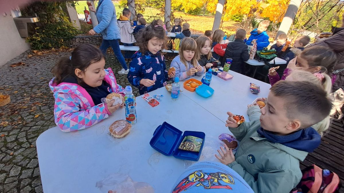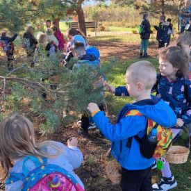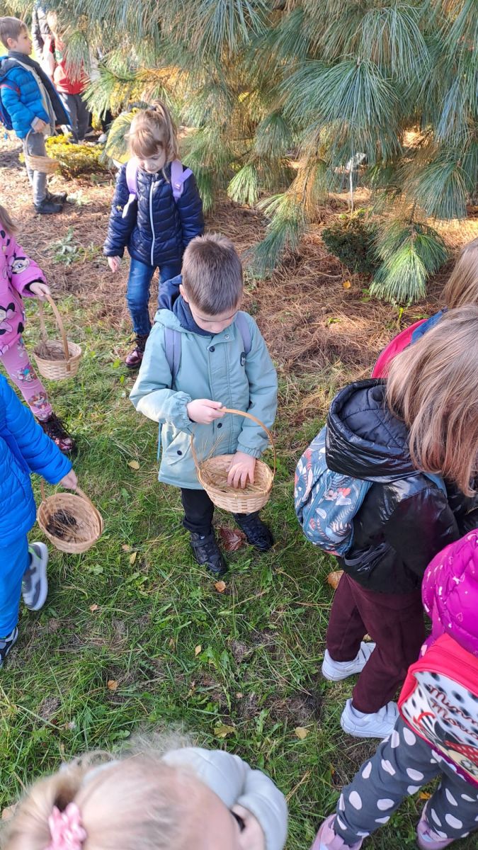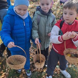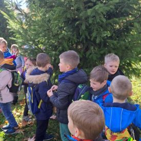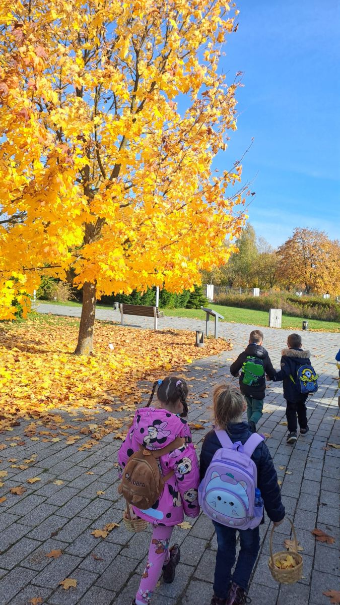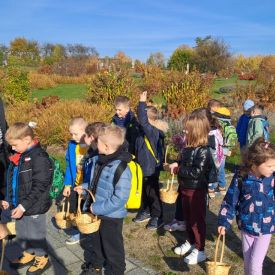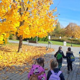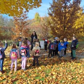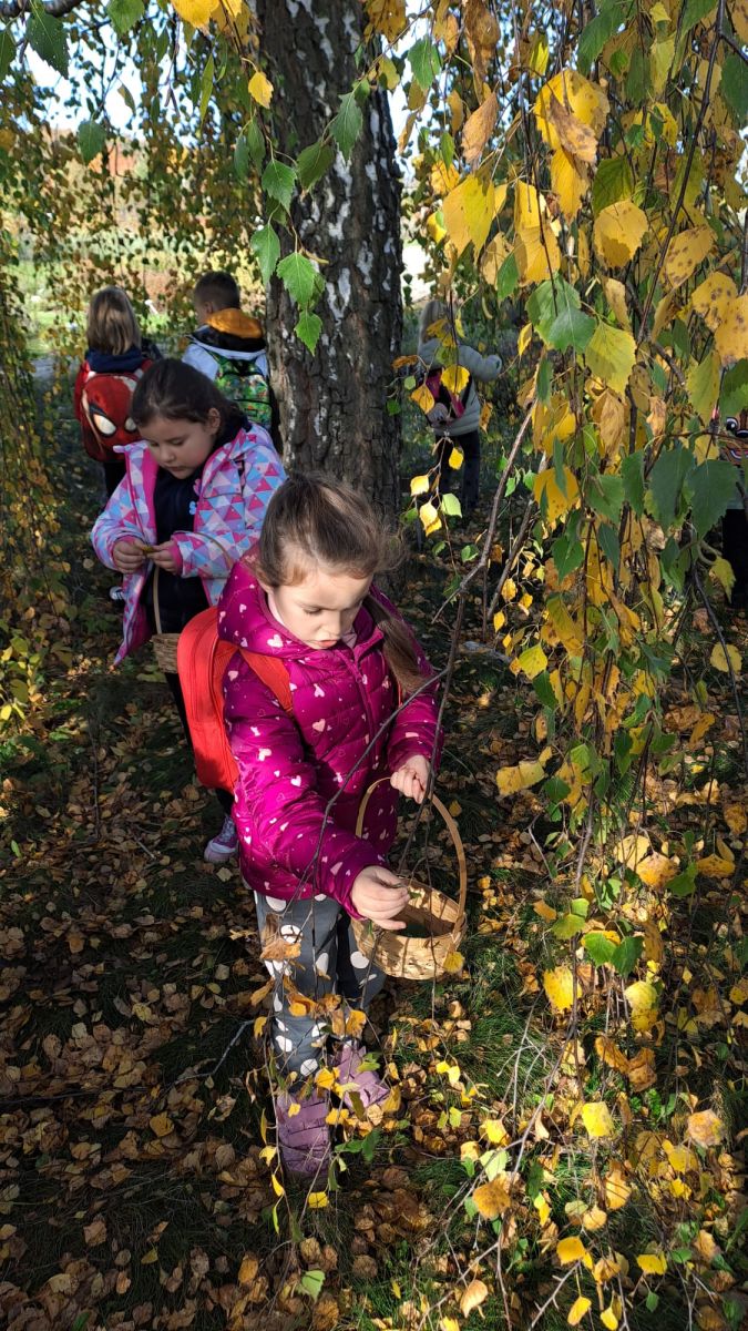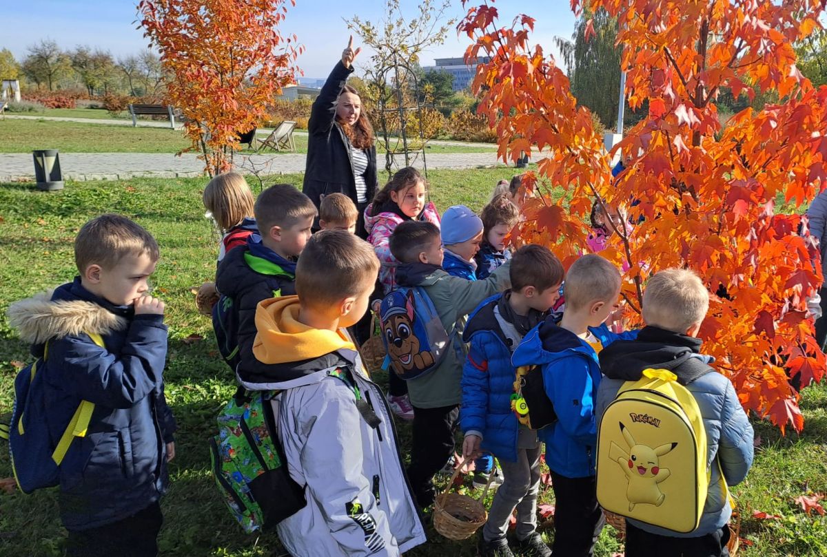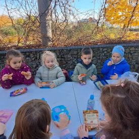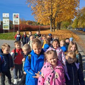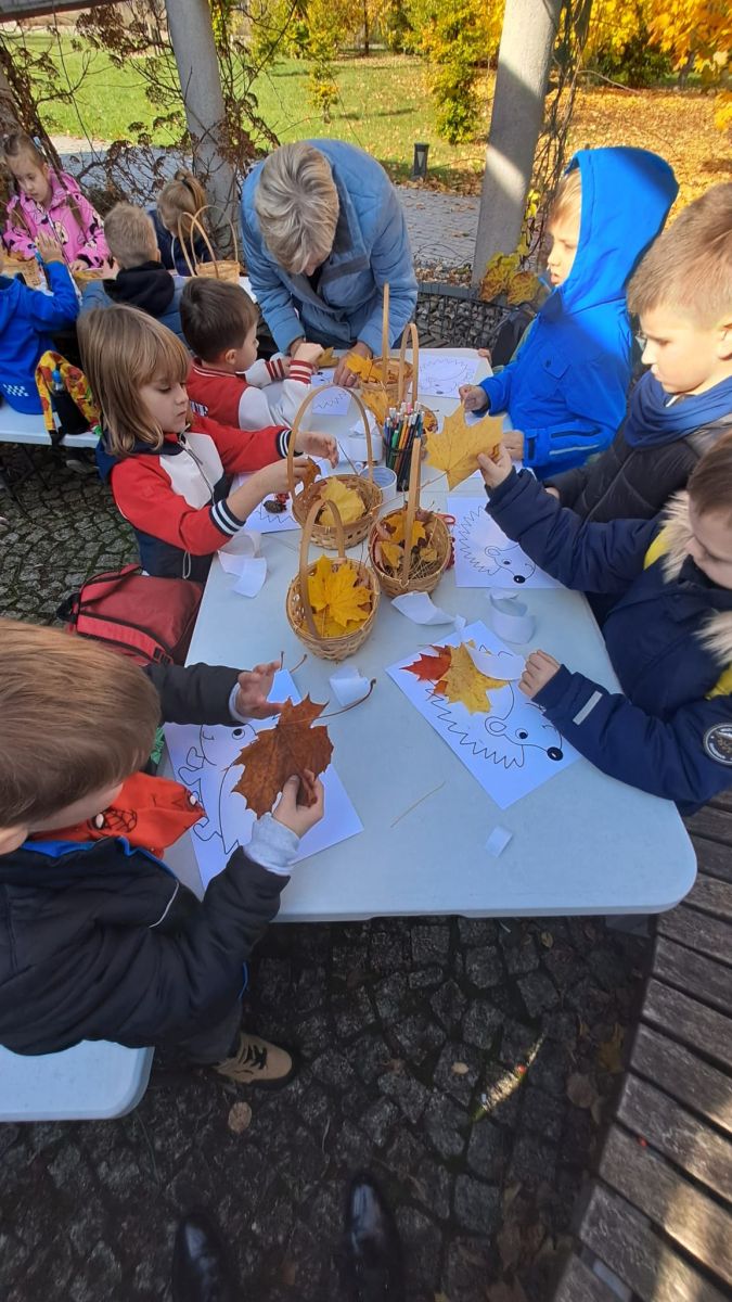 23 października 2025 r. dzieci z grupy „Sówek” wybrały się na pieszy rajd do Ogrodu Botanicznego w Kielcach. Przedszkolaki brały udział w zajęciach edukacyjnych „Zostań drzewoznawcą”. Podczas spaceru alejkami w ogrodzie, dzieci rozpoznawały popularne gatunki drzew, poznawały ciekawostki z nimi związane i znaczenie w przyrodzie i życiu człowieka oraz zbierały jesienne dary do koszyczków. Po skończonym spacerze zasiadły do wykonania pracy plastycznej „Jeżyk z darów jesieni”. Uwieńczeniem zajęć edukacyjnych był wspólny piknik wśród drzew i spadających kolorowych liści. Był to aktywnie i zdrowo spędzony czas na świeżym powietrzu w otoczeniu pięknej jesiennej przyrody.