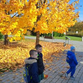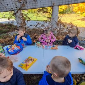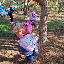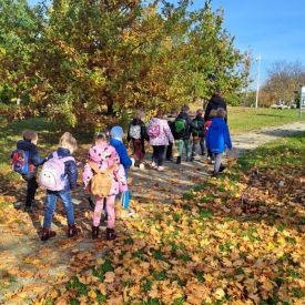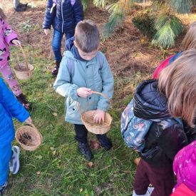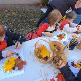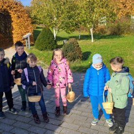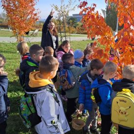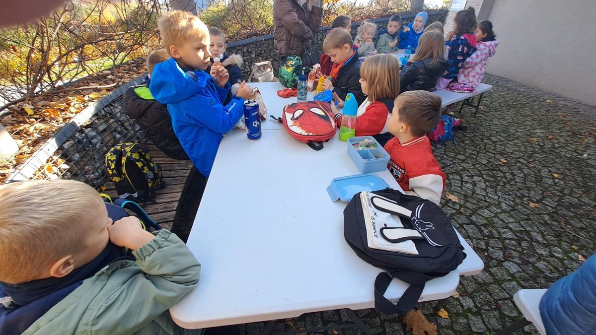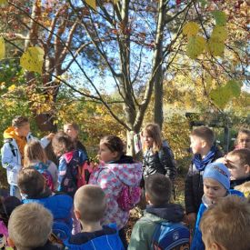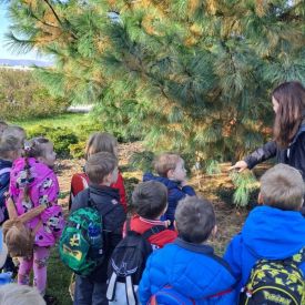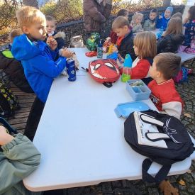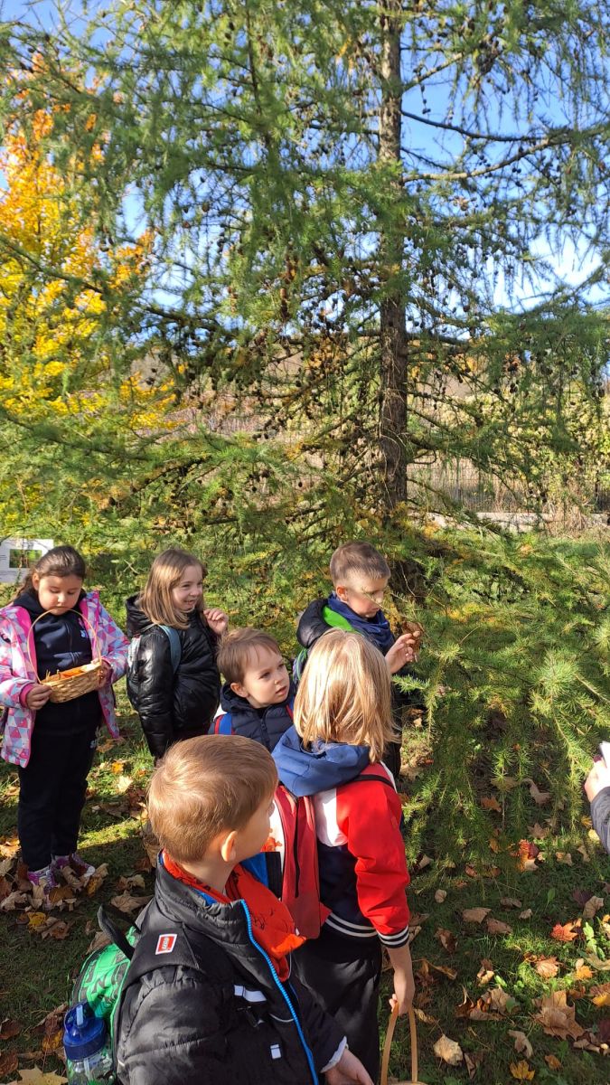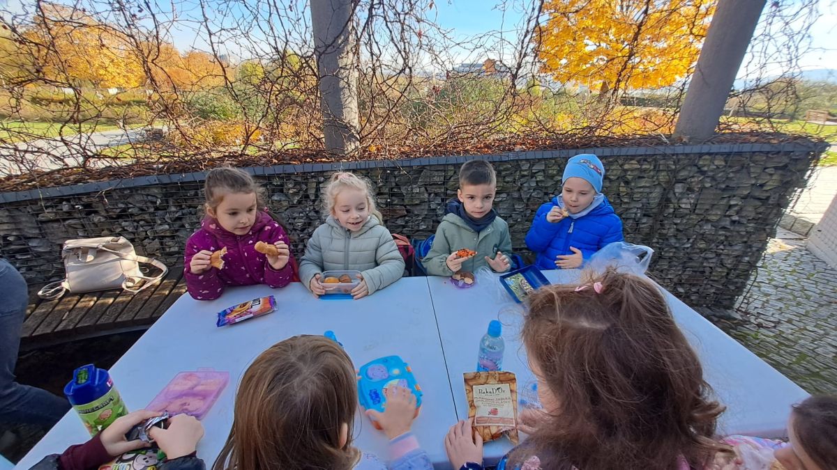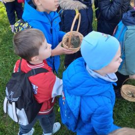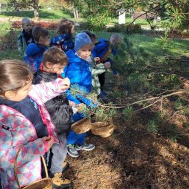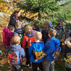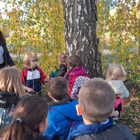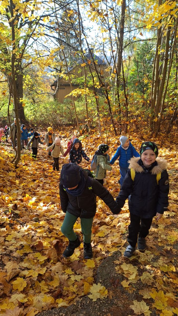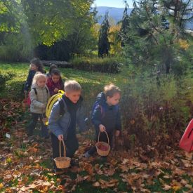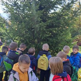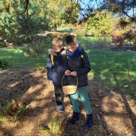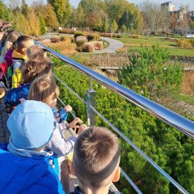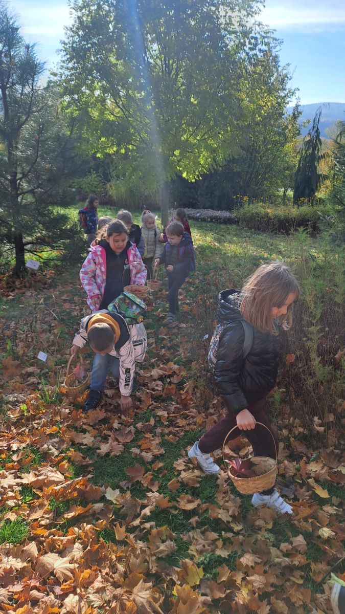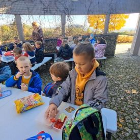 23 października 2025 r. dzieci z grupy „Sówek” wybrały się na pieszy rajd do Ogrodu Botanicznego w Kielcach. Przedszkolaki brały udział w zajęciach edukacyjnych „Zostań drzewoznawcą”. Podczas spaceru alejkami w ogrodzie, dzieci rozpoznawały popularne gatunki drzew, poznawały ciekawostki z nimi związane i znaczenie w przyrodzie i życiu człowieka oraz zbierały jesienne dary do koszyczków. Po skończonym spacerze zasiadły do wykonania pracy plastycznej „Jeżyk z darów jesieni”. Uwieńczeniem zajęć edukacyjnych był wspólny piknik wśród drzew i spadających kolorowych liści. Był to aktywnie i zdrowo spędzony czas na świeżym powietrzu w otoczeniu pięknej jesiennej przyrody.