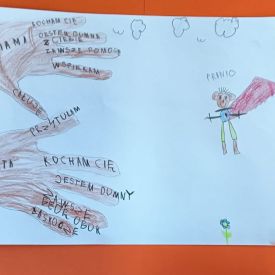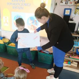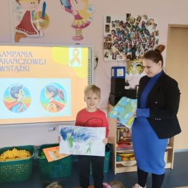 Jednym z kluczowych wydarzeń Kampanii Pomarańczowej Wstążki w naszym przedszkolu był konkurs plastyczny pt. „Każdy może być bohaterem”. Wzięły w nim udział dzieci z grup: „Motylki”, „Pszczółki” i „Sowy”. W swoich pracach dzieci ukazały różne sposoby niesienia pomocy innym w codziennym życiu. Wszyscy uczestnicy konkursu otrzymali drobne upominki, a wykonane przez dzieci prace zostały zaprezentowane na wystawie w przedszkolu.