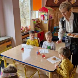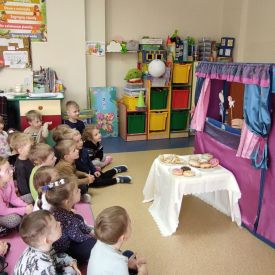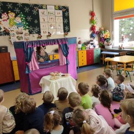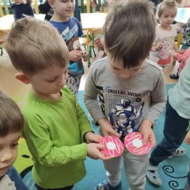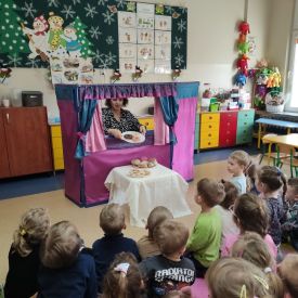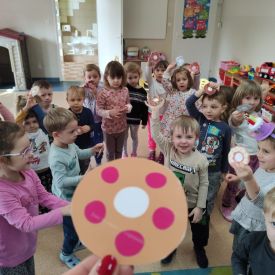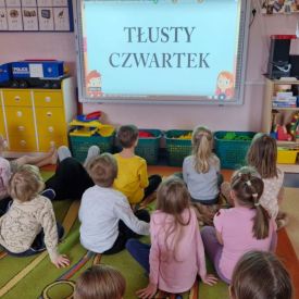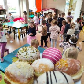 Obchody tłustego czwartku, to stały punkt w kalendarzu imprez w naszym przedszkolu. Przedszkolaki w tym dniu poznały tradycję i obrzędy związane z tym świętem. Odbyły się zabawy muzyczne, ruchowe, taneczne oraz plastyczne. Dzieci z grupy Biedronek i Żabek obejrzały także teatrzyk kartonikowy "Pączki, faworki u babci Honorki" przygotowany przez panią Monikę. Ciekawostką jest to, że autorką tekstu "Pączki, faworki u babci Honorki" jest patronka naszego przedszkola Maria Kownacka.