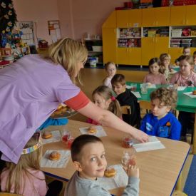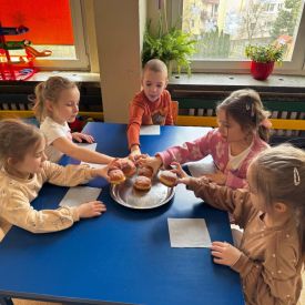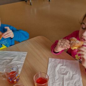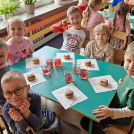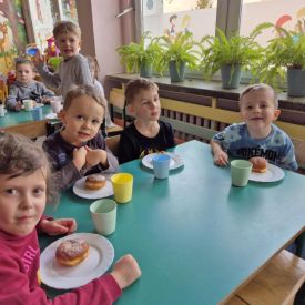 Aby tradycji stało się zadość każde dziecko zjadało ze smakiem pączka z cukrem pudrem i konfiturą. Ależ to był smaczny dzień!