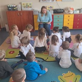 Dnia 27.03.2024 r. grupa Żabek gościła panią Katarzynę - mamę Igi, która przeczytała przedszkolakom książki z serii Kicia Kocia. Spotkanie dało wiele radości dzieciom i czytającej mamie Igi.