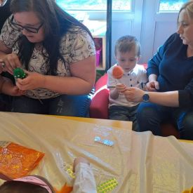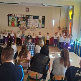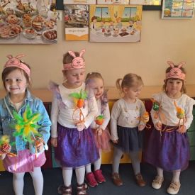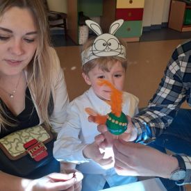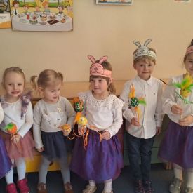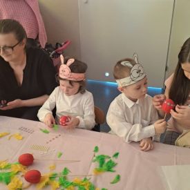 Dnia 27.03.2024 r. dzieci z grupy Żabek zaprezentowały Rodzicom program słowno-muzyczny „Wielkanocne spotkanie”, który przybliżył zgromadzonym gościom zwyczaje i tradycje wielkanocne. Występom dzieci towarzyszył śpiew, taniec oraz recytacja wierszy. Na zakończenie przedszkolaki, wychowawca i pani Dyrektor złożyli Rodzicom świąteczne życzenia. Występ przedszkolaków został nagrodzony gromkimi brawami na stojąco. Uwieńczeniem spotkania były warsztaty plastyczne z Rodzicami, gdzie dzieci razem z najbliższymi ozdabiali pisanki. Warsztaty przyczyniły się do budowania więzi rodzinnych oraz wzmacniania wspólnego poczucia świątecznej atmosfery.
