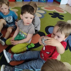 W ciągu ostatnich dwóch tygodni przedszkolaki z każdej grupy wzięły udział w zajęciach sensorycznych prowadzonych przez psychologa. Zajęcia rozpoczęła seria wyciszających ćwiczeń redukujących napięcie, a ich główny temat skoncentrowany był wokół wielozmysłowej historii, której można było nie tylko wysłuchać, ale także i dotknąć. W ten sposób przedszkolaki doskonaliły percepcję dotykową oraz sprawność motoryki małej. Przede wszystkim jednak zajęcia te obudziły dziecięcą ciekawość i były źródłem dobrej zabawy.