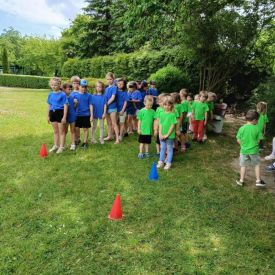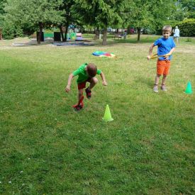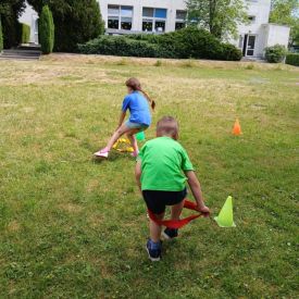 22.05.2024 r. dzieci z grupy II ,,Żabki” i V ,,Sówki” wzięły udział w zajęciach sportowych na terenie ogrodu przedszkolnego w ramach realizacji programu ,,Zdrowo i sportowo”.
