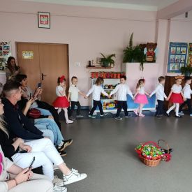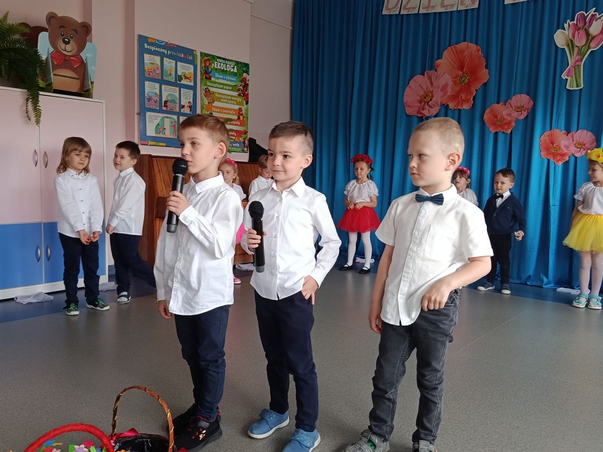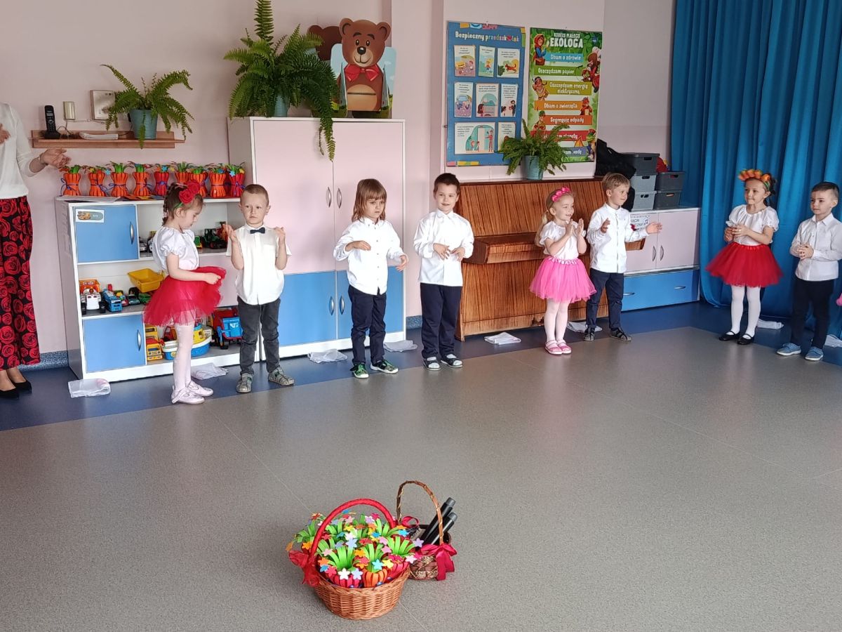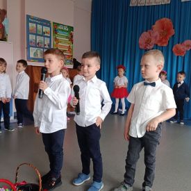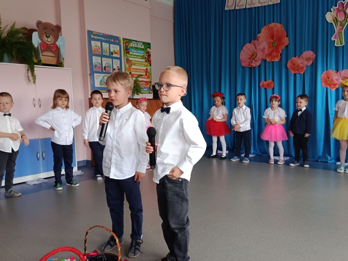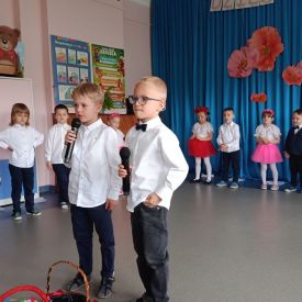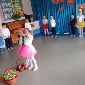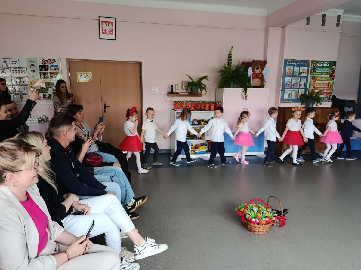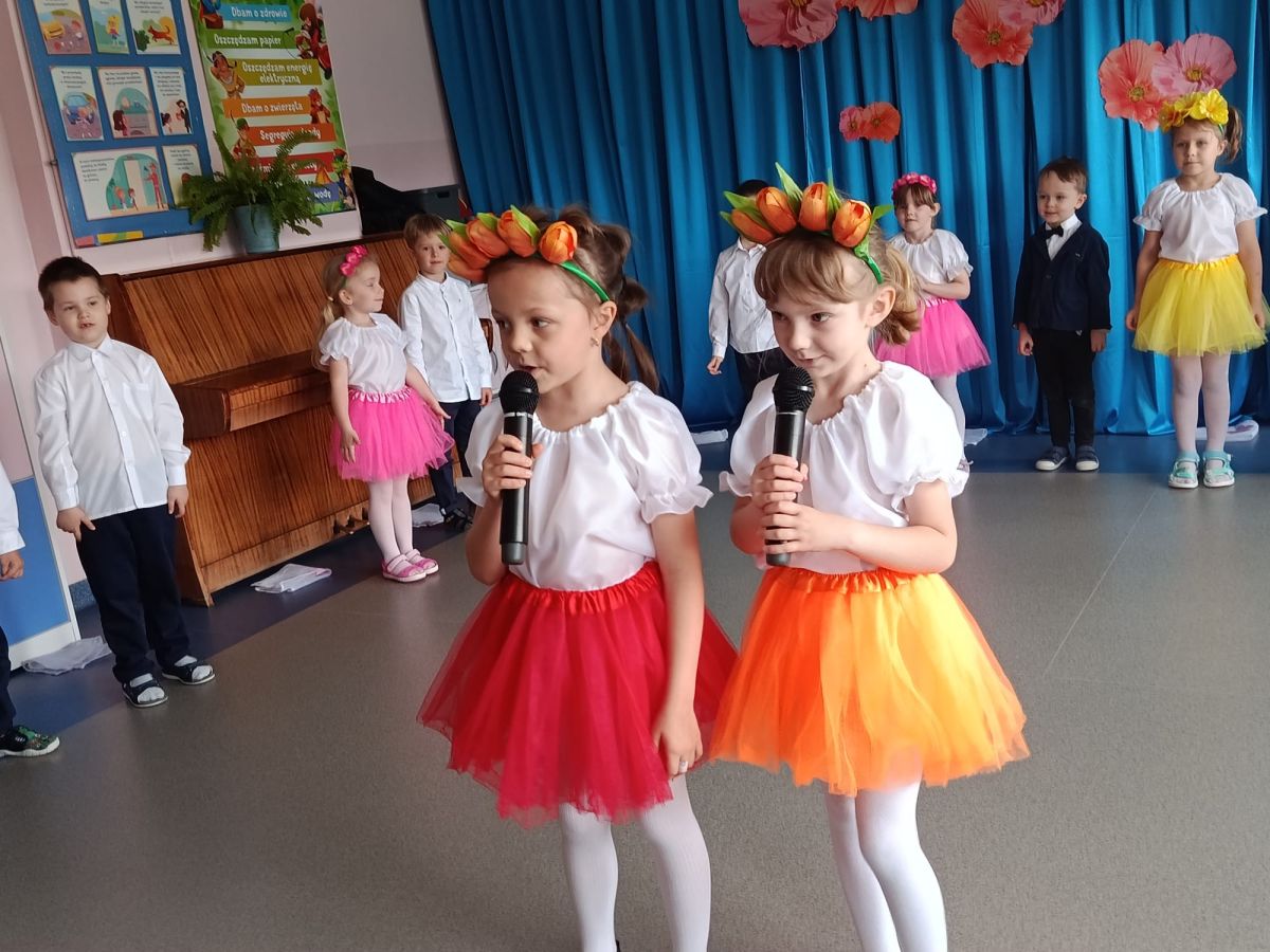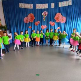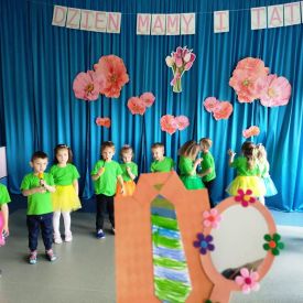 W dniach 23 i 26 maja w naszym przedszkolu odbywały się uroczystości z okazji Dnia Mamy i Taty, podczas których dzieci z grup: Biedronek, Żabek i Motylków zaprezentowały swój program słowno - muzyczny. Piosenki i wierszyki wywołały wzruszenie i uśmiechy na twarzach rodziców. Po udanych występach artystycznych każdy przedszkolak wręczał Mamie i Tacie własnoręcznie wykonany upominek.