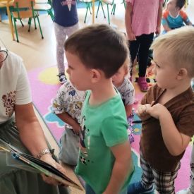 27 września przedszkolaki z grupy Żabek i Motylków odwiedziła bibliotekarka z Miejskiej Biblioteki Publicznej Filii nr 2.
