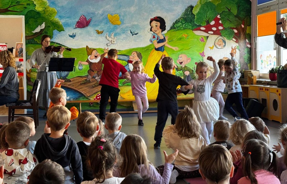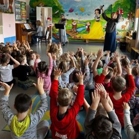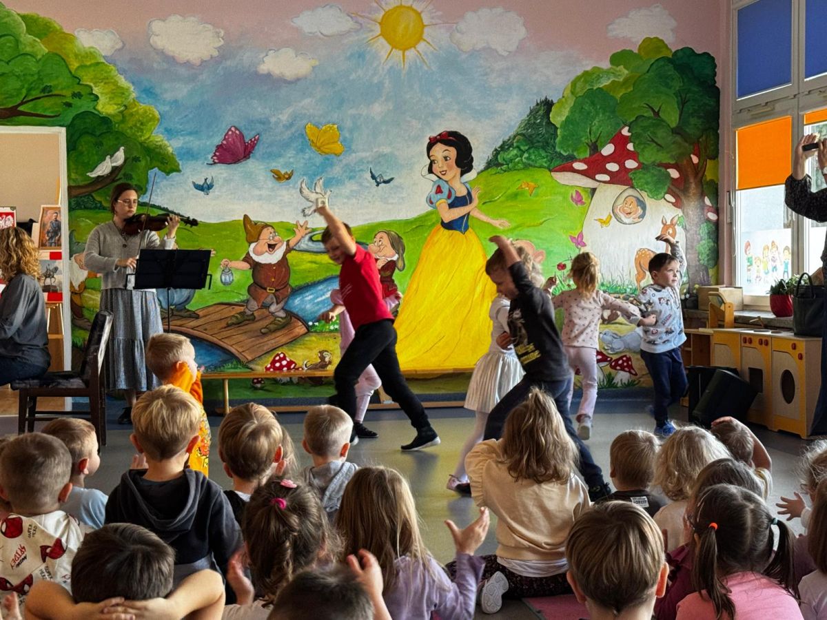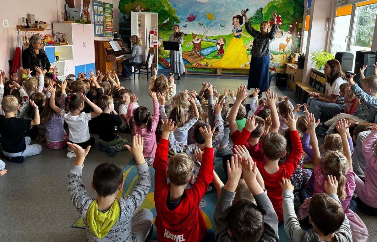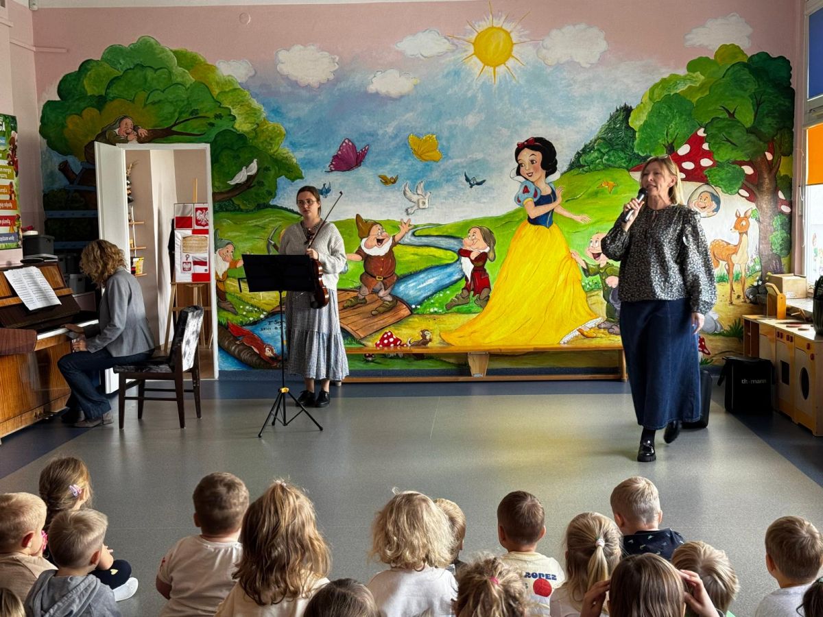 Podczas październikowego koncertu przedszkolaki wysłuchały "Bajki o Chopinie" w nawiązaniu do XIX Międzynarodowego Konkursu Pianistycznego im. Fryderyka Chopina, który odbywał się w tym roku w Warszawie i cieszył się ogromną popularnością. Przedszkolaki wraz z panią Agnieszką, wyruszyły w muzyczną podróż śladami małego Frycka, który marzył o fortepianie. Wysłuchały jego utworów od wesołych mazurków, po melodyjne nokturny. Zabrzmiały również kompozycje innych twórców cenionych przez Chopina oraz muzyka ludowa, którą pianista był zachwycony.