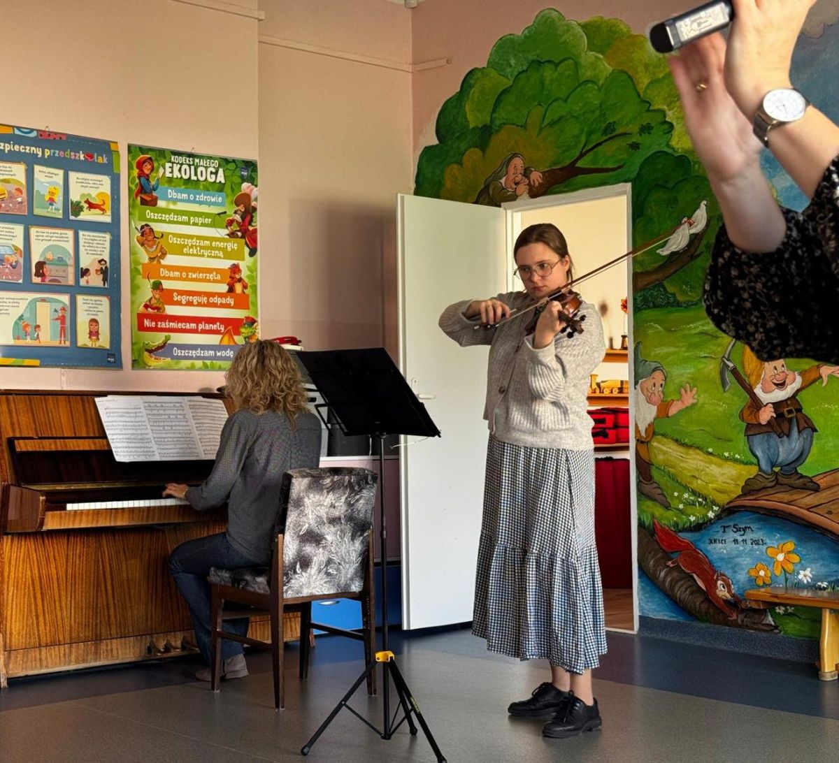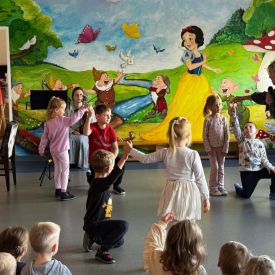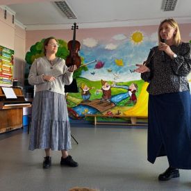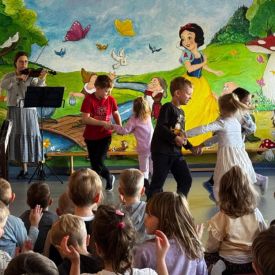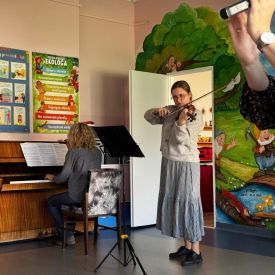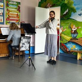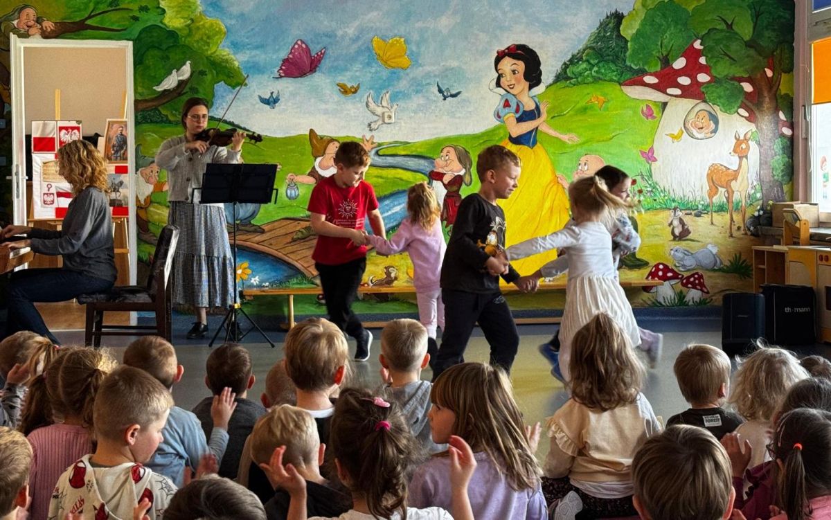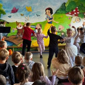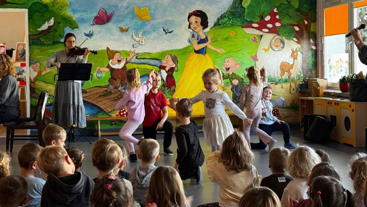 Podczas październikowego koncertu przedszkolaki wysłuchały "Bajki o Chopinie" w nawiązaniu do XIX Międzynarodowego Konkursu Pianistycznego im. Fryderyka Chopina, który odbywał się w tym roku w Warszawie i cieszył się ogromną popularnością. Przedszkolaki wraz z panią Agnieszką, wyruszyły w muzyczną podróż śladami małego Frycka, który marzył o fortepianie. Wysłuchały jego utworów od wesołych mazurków, po melodyjne nokturny. Zabrzmiały również kompozycje innych twórców cenionych przez Chopina oraz muzyka ludowa, którą pianista był zachwycony.