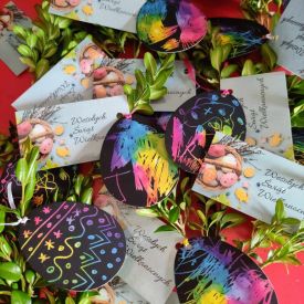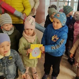 Tuż przed Świętami Wielkanocnymi dzieci z grupy Biedronek w imieniu całej społeczności przedszkolnej wyruszyły do zaprzyjaźnionych instytucji z świątecznymi życzeniami. Odwiedziły Miejską Bibliotekę Publiczną Filię nr 2 , Dom Seniora oraz Środowiskowy Dom Samopomocy Typu C. Wszyscy byli miło zaskoczeni wizytą najmłodszych przedszkolaków.