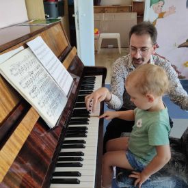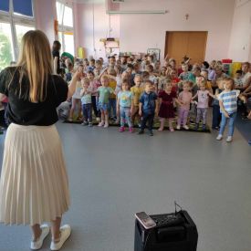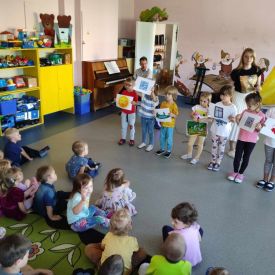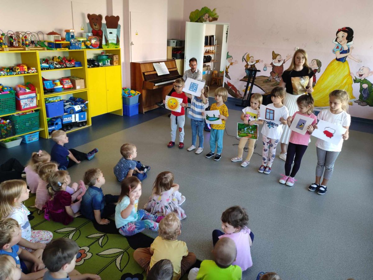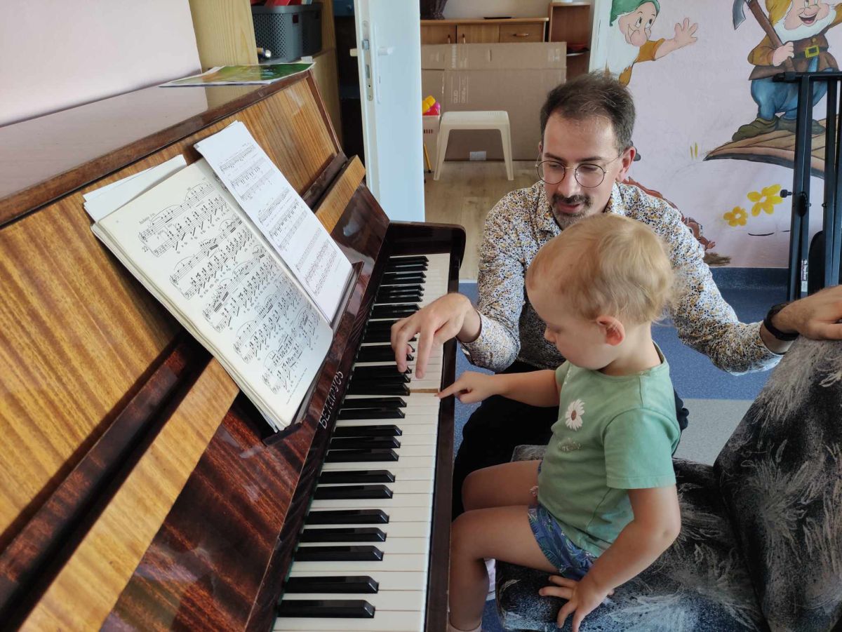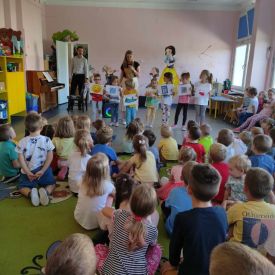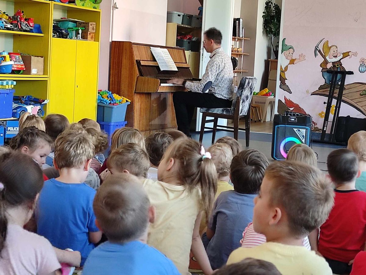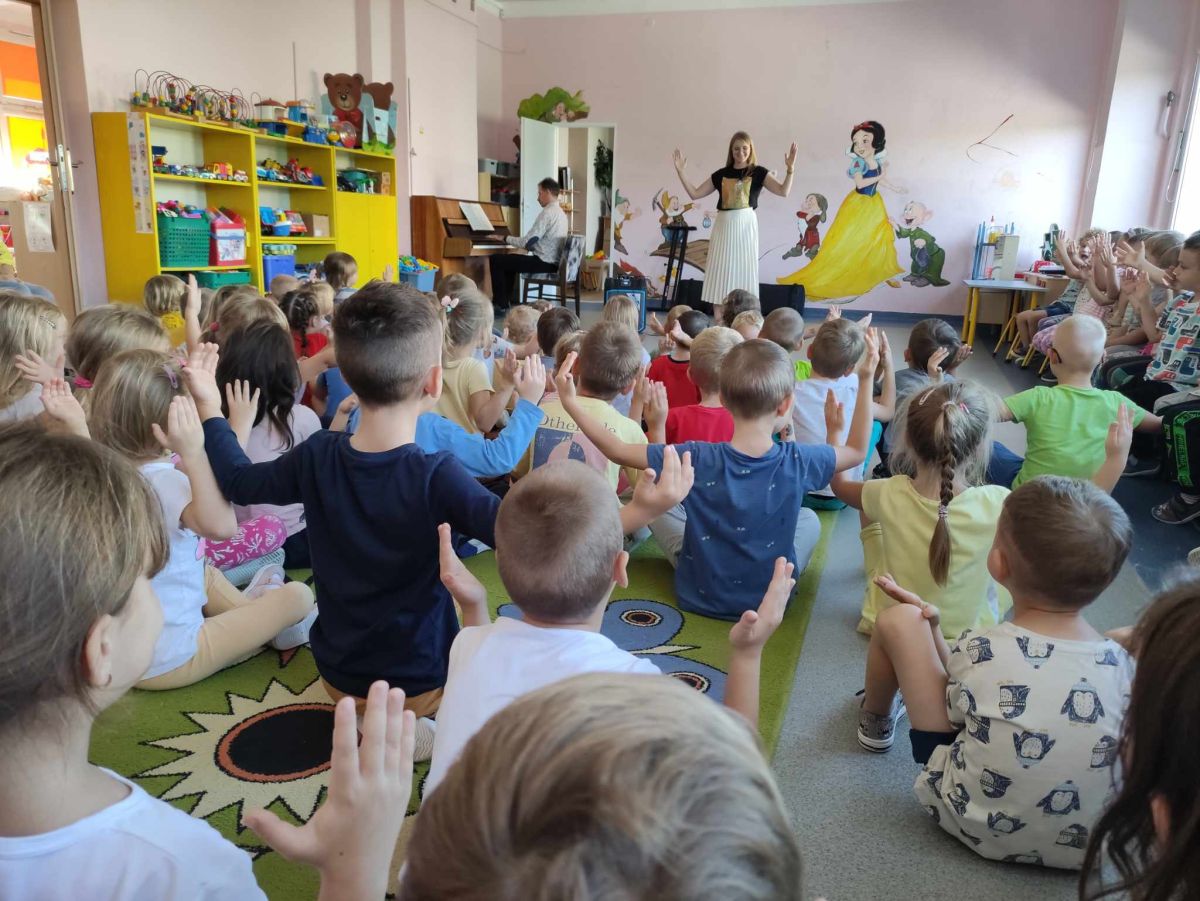 27 września rozpoczęliśmy cykl koncertów muzycznych we współpracy z Filharmonią Świętokrzyską. Podczas pierwszego koncertu przedszkolaki zostały zapoznane z muzyką Fryderyka Chopina. Zagrał dla dzieci niesamowity, czarodziejski instrument - PIANINO. Przedszkolaki zobaczyły ile dźwięków można zagrać na pianinie jednym palcem, niektórzy mieli okazję przekonać się o tym osobiście.