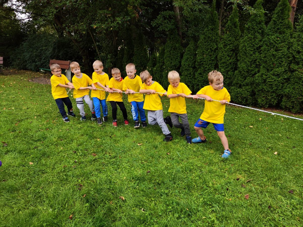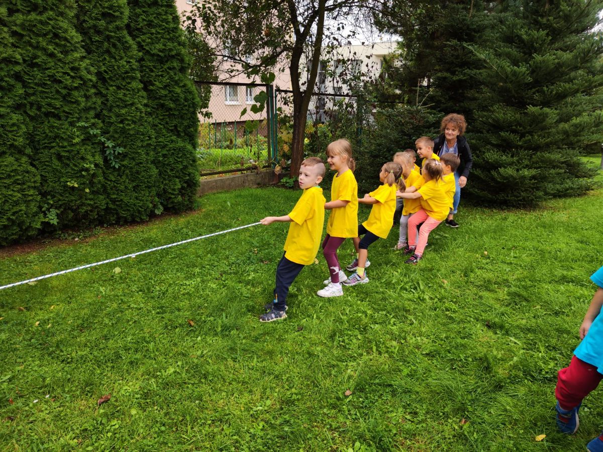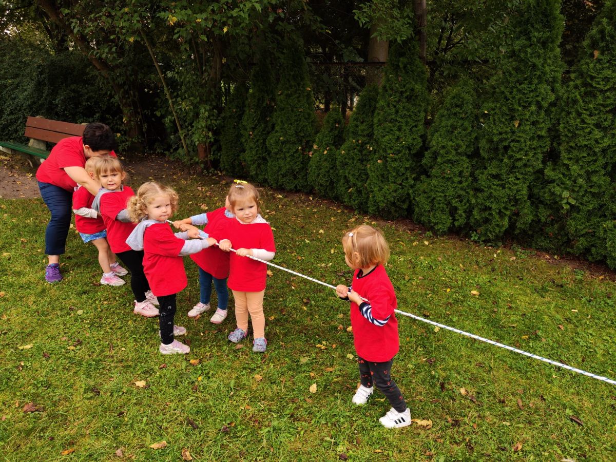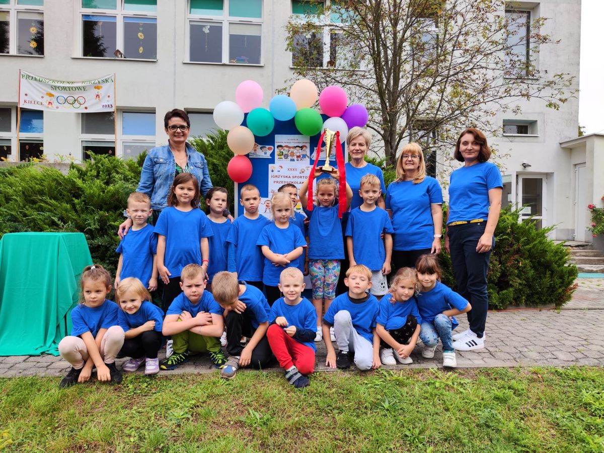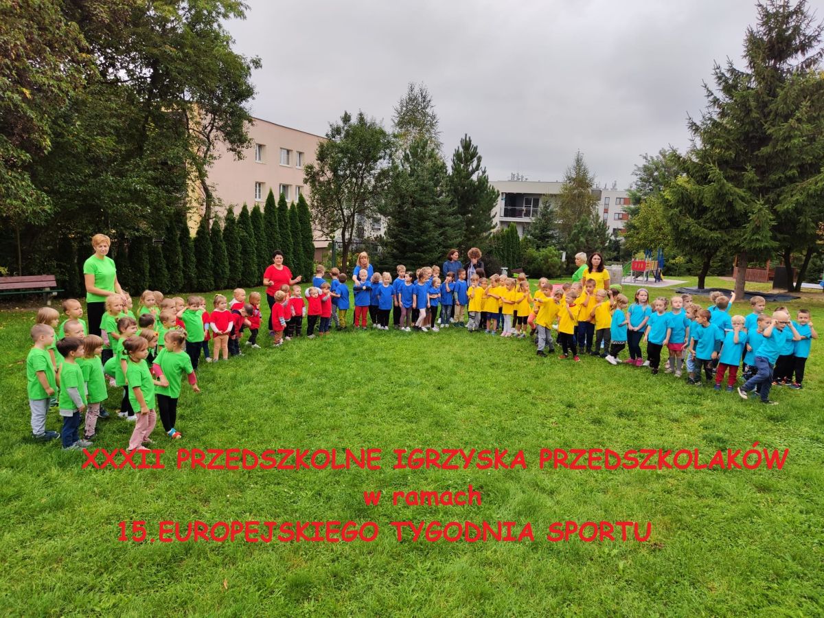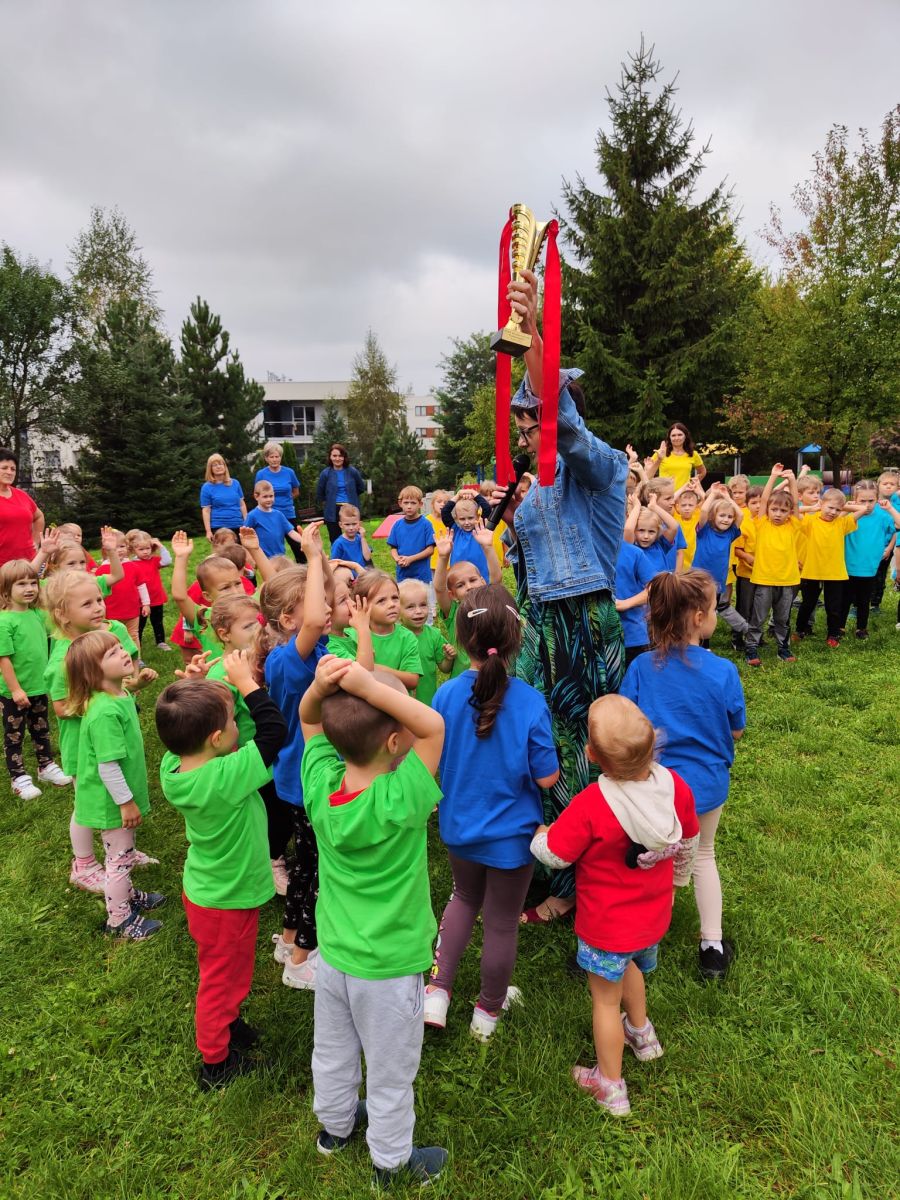 Tydzień Sportu w naszym przedszkolu w ramach XXIX SPORTOWEGO TURNIEJU MIAST i GMIN oraz XV EUROPEJSKIEGO TYGODNIA SPORTU był bardzo wyjątkowy. Nauczycielki Pani Monika i Pani Ula przygotowały dla dzieci wspaniałe zabawy ruchowe i piesze wycieczki. W nowoczesnej formie prowadzone były każdego ranka ćwiczenia w formie aerobiku przy muzyce na świeżym powietrzu. Nieodłącznym akcentem Tygodnia Sportu są Przedszkolne Igrzyska Sportowe. Dzieci mają możliwość wykazania się swoją sprawnością fizyczną podczas udziału w różnych dyscyplinach sportowych. Pani Dyrektor oraz nauczycielki dopingowały młodych sportowców podczas wykonywania ćwiczeń w ogrodzie. XXXII Przedszkolne Igrzyska Sportowe były podsumowaniem umiejętności ruchowych dzieci, w których poprzez rywalizację uczyły się poprawnego zachowania, integracji oraz zabawy fair play. Uwieńczeniem Igrzysk było zdobycie przez przedszkolaków pucharu i złożone go na ręce Pani Dyrektor. Dzieci miały możliwość uczestniczyć również w pieszym rajdzie na Brusznię.