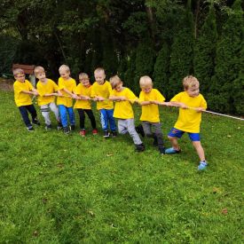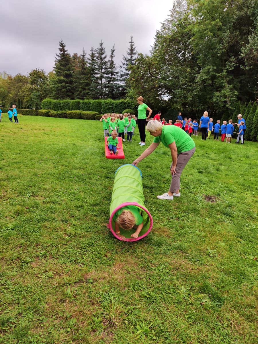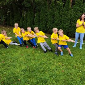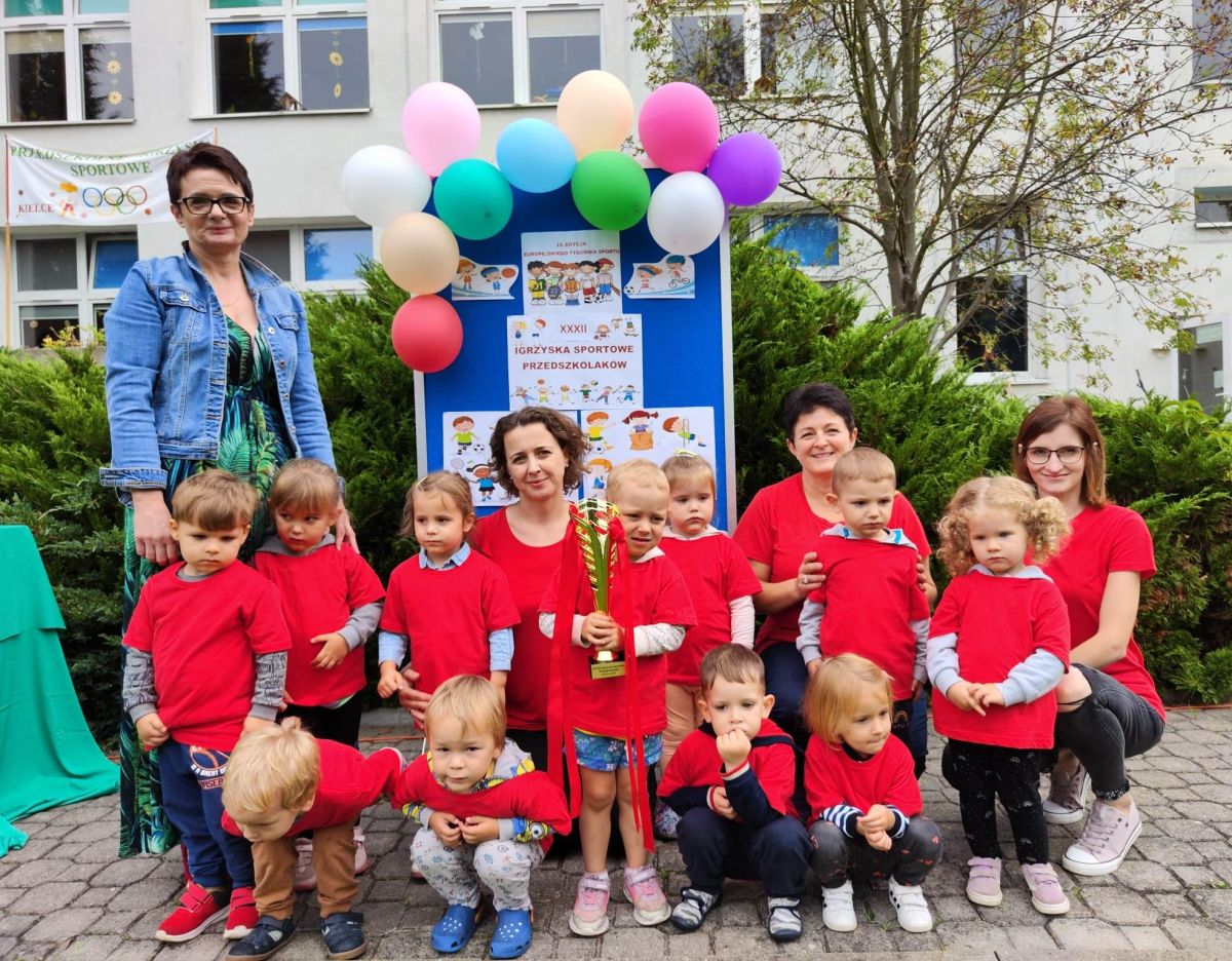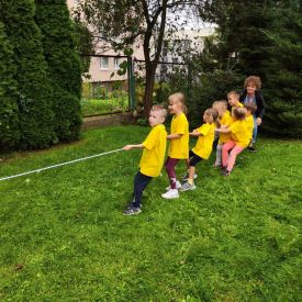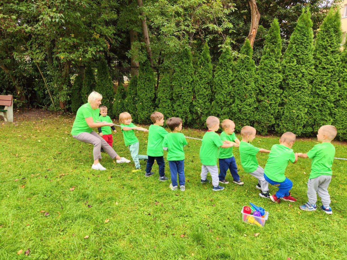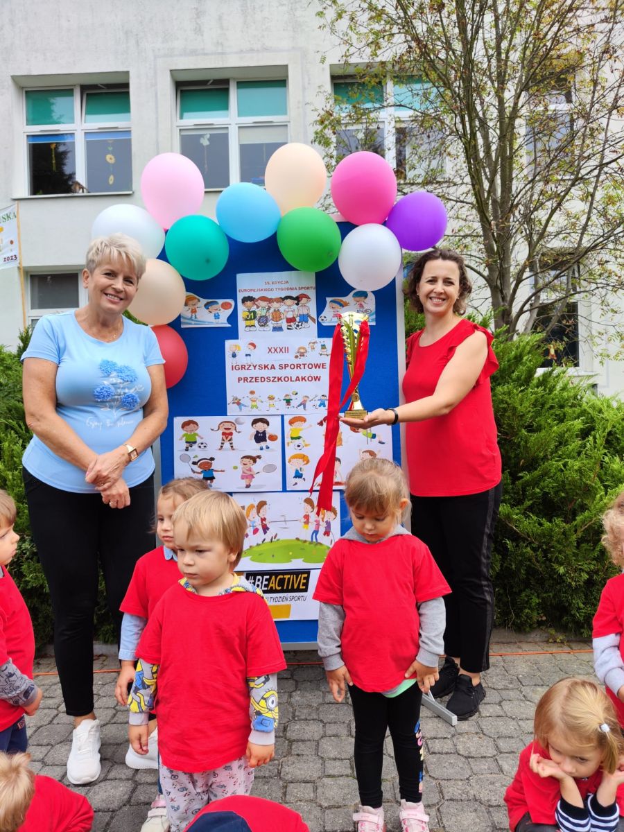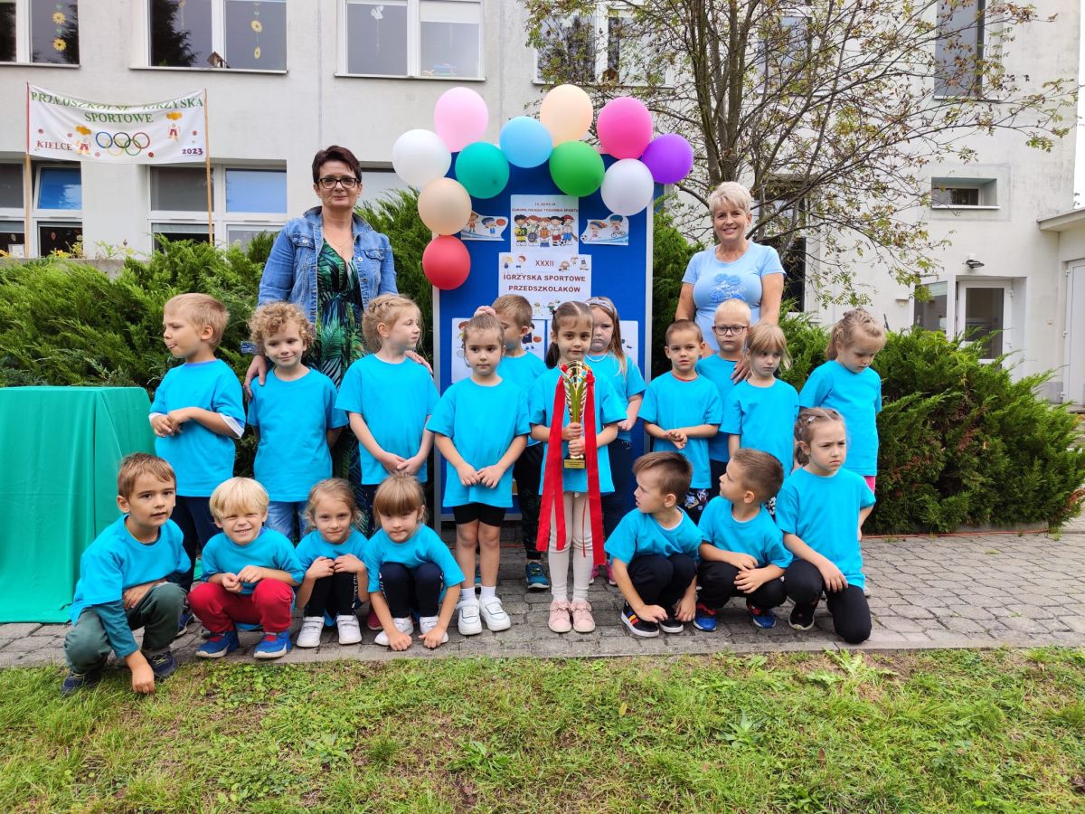 Tydzień Sportu w naszym przedszkolu w ramach XXIX SPORTOWEGO TURNIEJU MIAST i GMIN oraz XV EUROPEJSKIEGO TYGODNIA SPORTU był bardzo wyjątkowy. Nauczycielki Pani Monika i Pani Ula przygotowały dla dzieci wspaniałe zabawy ruchowe i piesze wycieczki. W nowoczesnej formie prowadzone były każdego ranka ćwiczenia w formie aerobiku przy muzyce na świeżym powietrzu. Nieodłącznym akcentem Tygodnia Sportu są Przedszkolne Igrzyska Sportowe. Dzieci mają możliwość wykazania się swoją sprawnością fizyczną podczas udziału w różnych dyscyplinach sportowych. Pani Dyrektor oraz nauczycielki dopingowały młodych sportowców podczas wykonywania ćwiczeń w ogrodzie. XXXII Przedszkolne Igrzyska Sportowe były podsumowaniem umiejętności ruchowych dzieci, w których poprzez rywalizację uczyły się poprawnego zachowania, integracji oraz zabawy fair play. Uwieńczeniem Igrzysk było zdobycie przez przedszkolaków pucharu i złożone go na ręce Pani Dyrektor. Dzieci miały możliwość uczestniczyć również w pieszym rajdzie na Brusznię.