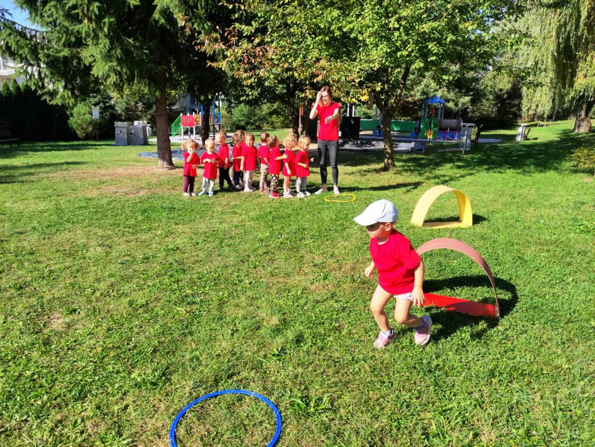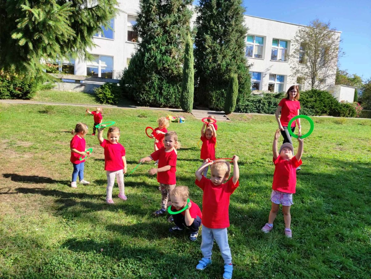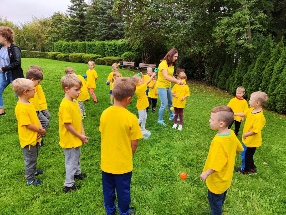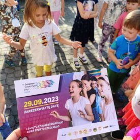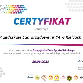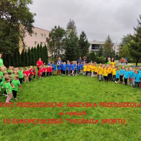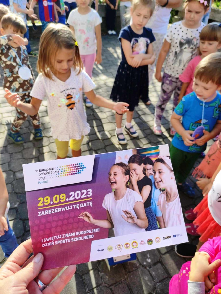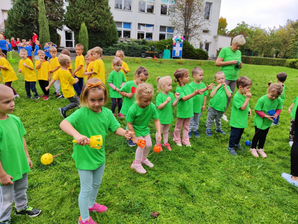 Podsumowanie Europejskiego Tygodnia Sportu nastąpiło 29 września podczas świętowania przez naszą placówkę Europejskiego Dnia Sportu Szkolnego w trakcie którego przedszkolaki uczestniczyły w porannym aerobiku, zajęciach pokazowych Drużyny Kangura z piłkami oraz zabawach w ogrodzie przedszkolnym z wykorzystaniem sprzętu rekreacyjnego.