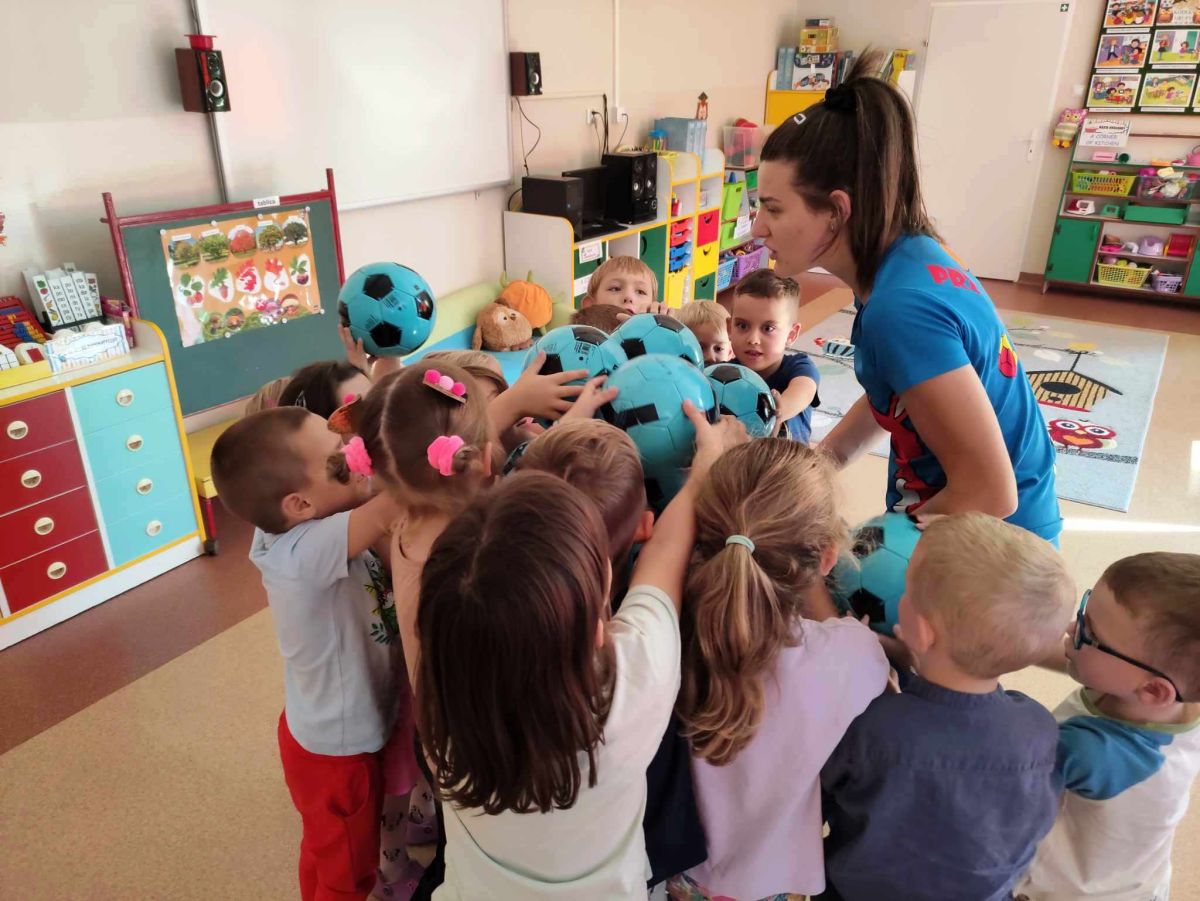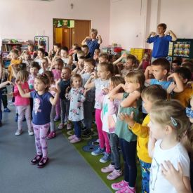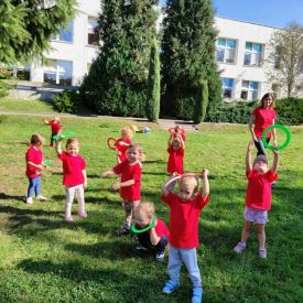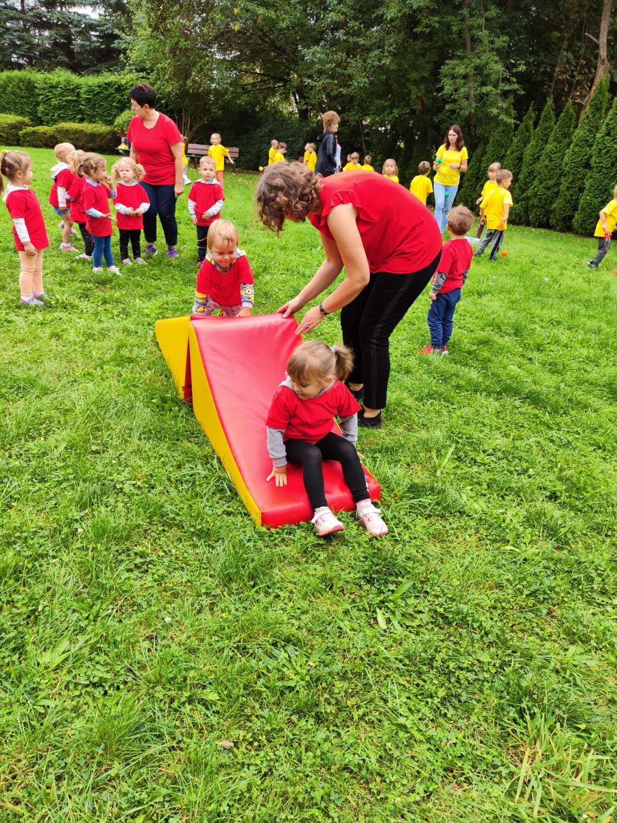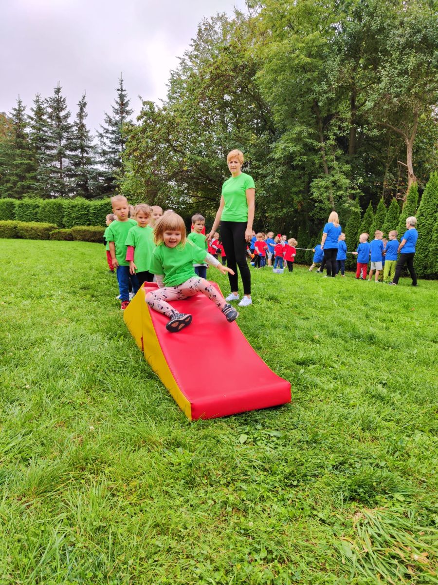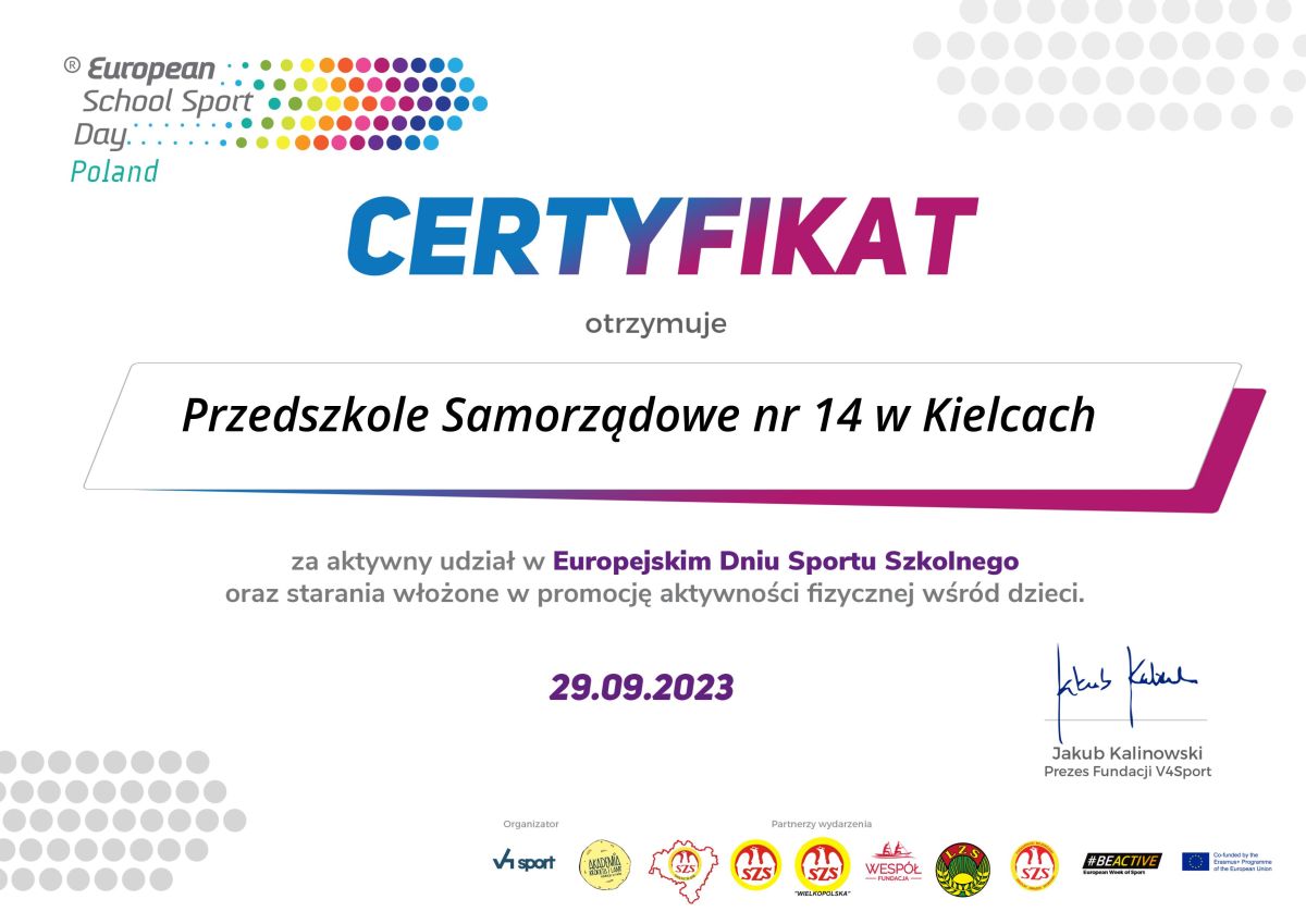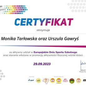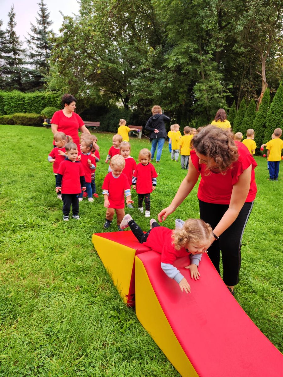 Podsumowanie Europejskiego Tygodnia Sportu nastąpiło 29 września podczas świętowania przez naszą placówkę Europejskiego Dnia Sportu Szkolnego w trakcie którego przedszkolaki uczestniczyły w porannym aerobiku, zajęciach pokazowych Drużyny Kangura z piłkami oraz zabawach w ogrodzie przedszkolnym z wykorzystaniem sprzętu rekreacyjnego.