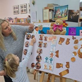 następnie wykonywały „misiowe zadania”: rozwiązywały zagadki, łączyły misiowe pary,