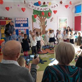 Dzień Babci i Dziadka jest już na stałe wpisany w kalendarz uroczystości przedszkolnych. Dzieci z naszego Przedszkola gościły swoje Babcie oraz Dziadków na uroczystości z tej okazji. Każda grupa przedszkolna zapraszała swoich Dziadków i Babcie w inny dzień. Przedszkolaki zaprezentowały piosenki, wiersze i tańce. Następnie obdarowały swoich ukochanych gości upominkami, przygotowanymi własnoręcznie.