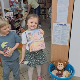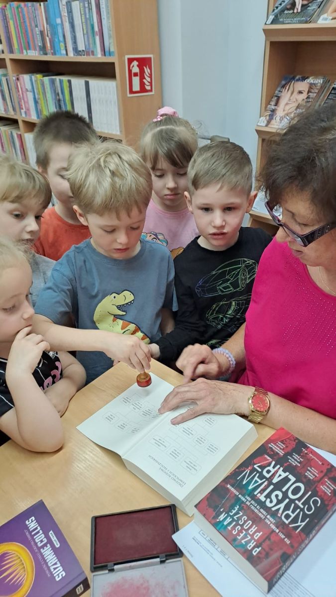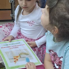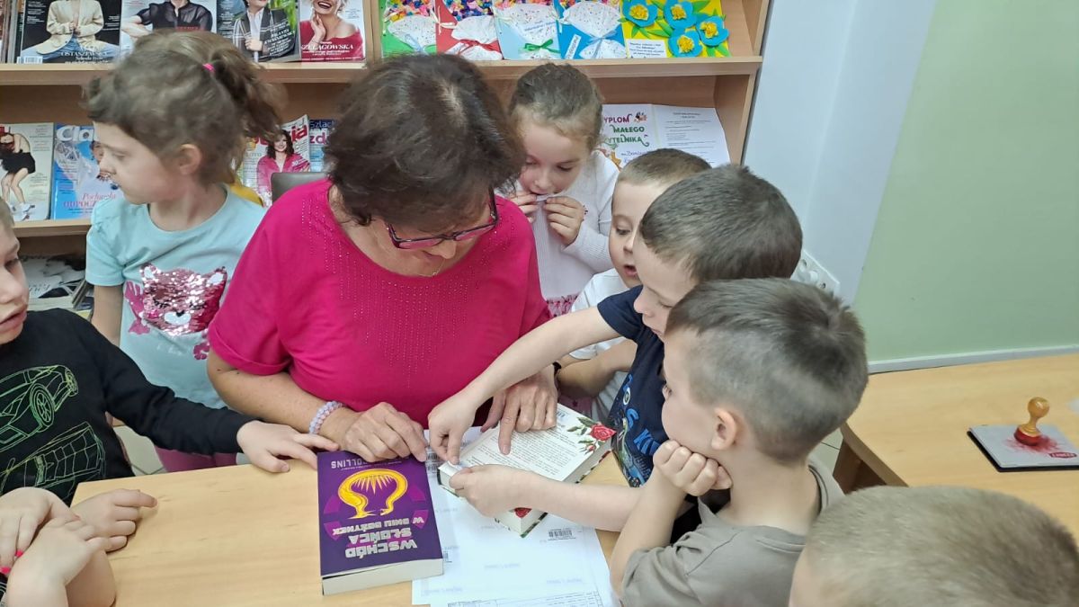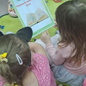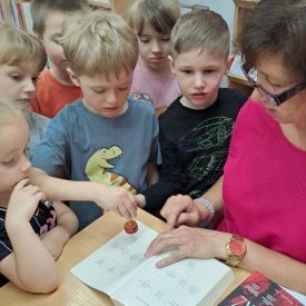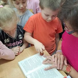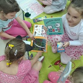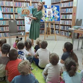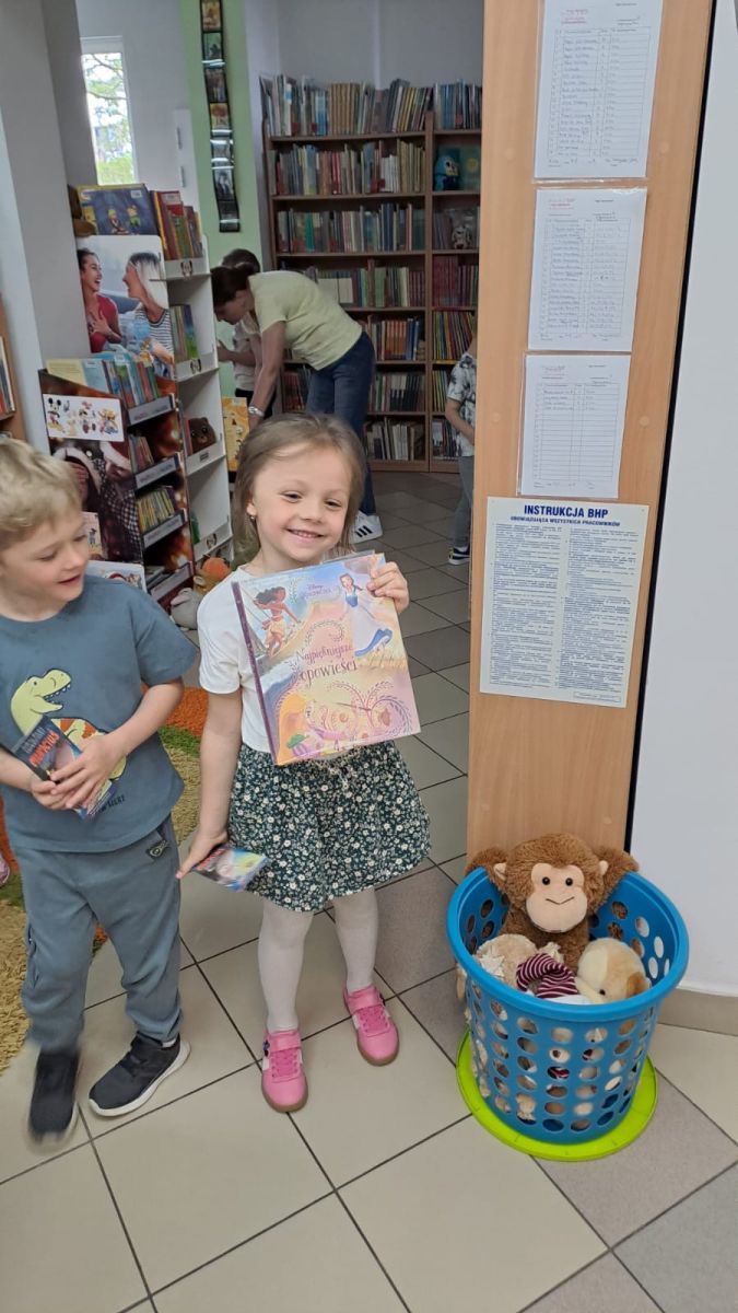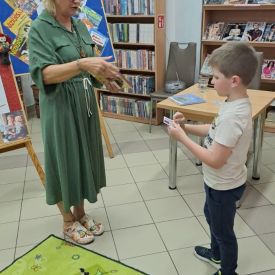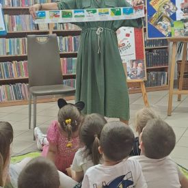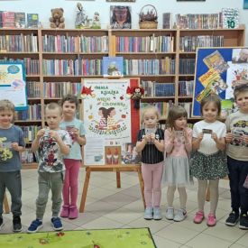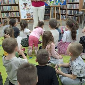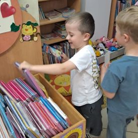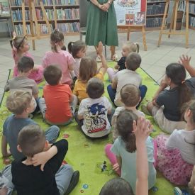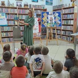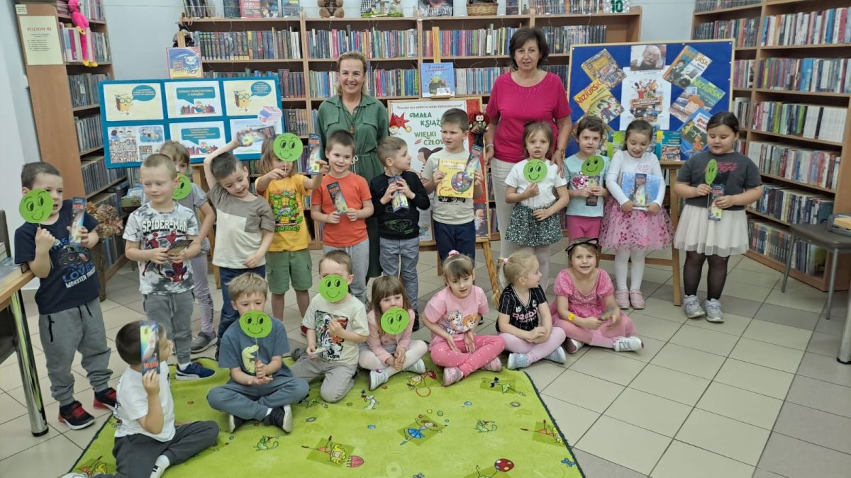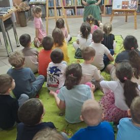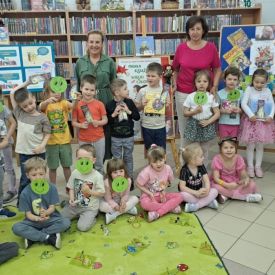 W środę 28 mają bieżącego roku, Motylki zrealizowały ostatnie już zadanie z projektu. Tym razem był to krąg V "Postaw na społeczeństwo", a temat tych zajęć brzmiał: "Zawody znamy w okolicy ich szukamy". Tego dnia dzieci odwiedziły pobliską bibliotekę, gdzie dowiedziały się jak wygląda praca bibliotekarza, jak gromadzić i opisywać książki, układać je na półkach i udostępniać czytelnikom. Dzieci zapoznały się z etapami, przez jakie przechodzi książka zanim trafi na półkę w bibliotece oraz dowiedziały się jakich zasad należy przestrzegać korzystając z książek. Podczas tej wizyty w bibliotece dzieci, które już posiadają kartę biblioteczną postanowiły wypożyczyć książeczki, które przeczytają razem z rodzicami. Ponadto dziesięcioro dzieci z grupy Motylków wzięło udział w akcji "Mała książka - wielki człowiek" . Akcja ta ma na celu promowanie czytelnictwa wśród dzieci i rodziców.
