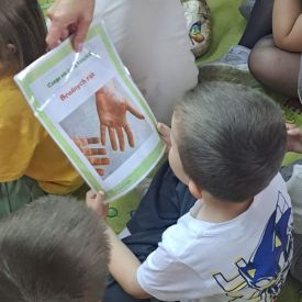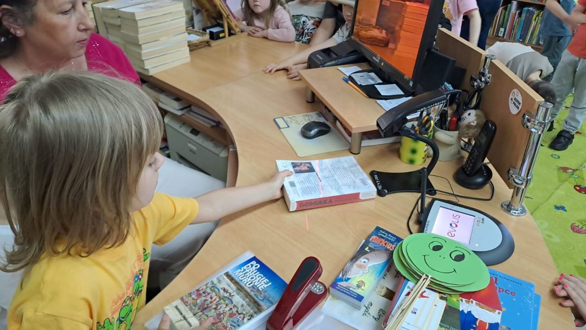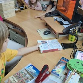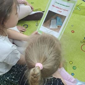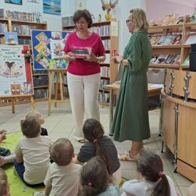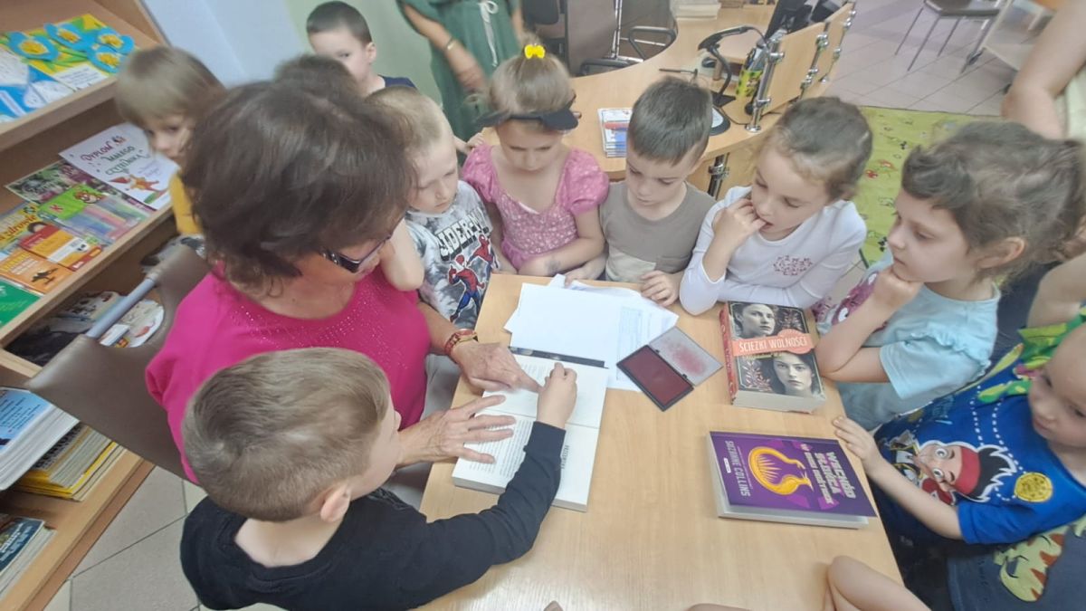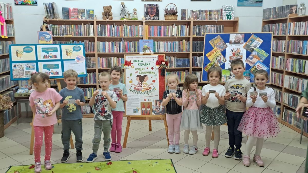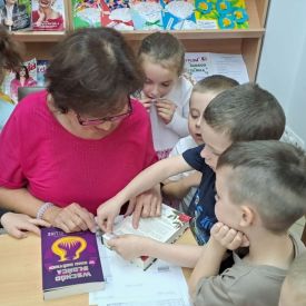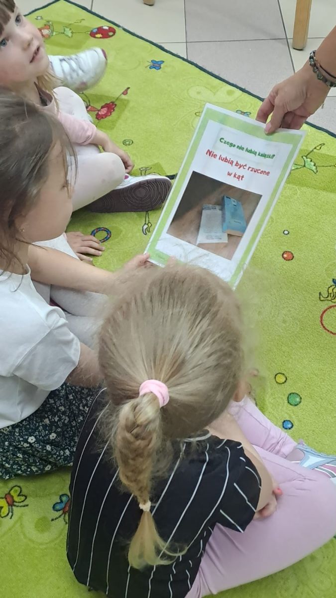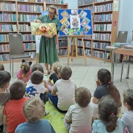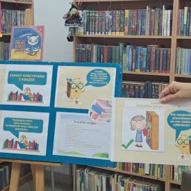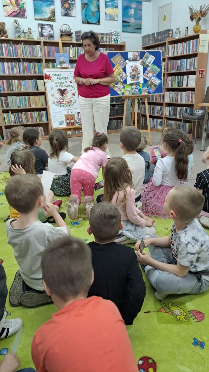 W środę 28 mają bieżącego roku, Motylki zrealizowały ostatnie już zadanie z projektu. Tym razem był to krąg V "Postaw na społeczeństwo", a temat tych zajęć brzmiał: "Zawody znamy w okolicy ich szukamy". Tego dnia dzieci odwiedziły pobliską bibliotekę, gdzie dowiedziały się jak wygląda praca bibliotekarza, jak gromadzić i opisywać książki, układać je na półkach i udostępniać czytelnikom. Dzieci zapoznały się z etapami, przez jakie przechodzi książka zanim trafi na półkę w bibliotece oraz dowiedziały się jakich zasad należy przestrzegać korzystając z książek. Podczas tej wizyty w bibliotece dzieci, które już posiadają kartę biblioteczną postanowiły wypożyczyć książeczki, które przeczytają razem z rodzicami. Ponadto dziesięcioro dzieci z grupy Motylków wzięło udział w akcji "Mała książka - wielki człowiek" . Akcja ta ma na celu promowanie czytelnictwa wśród dzieci i rodziców.