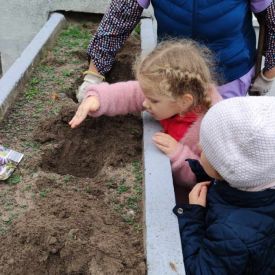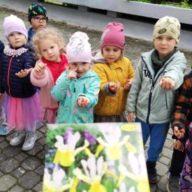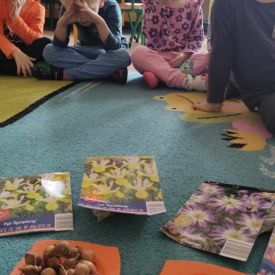 Przedszkolaki z grupy Żabek myślą już o wiośnie. W pewien październikowy dzień wraz ze swoimi paniami posadziły cebulki irysów, zawilców w gazonie na tarasie. Mamy nadzieję, że na wiosnę będziemy mogli obserwować wzrost kwiatów, które będą ozdobą naszego tarasu.