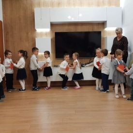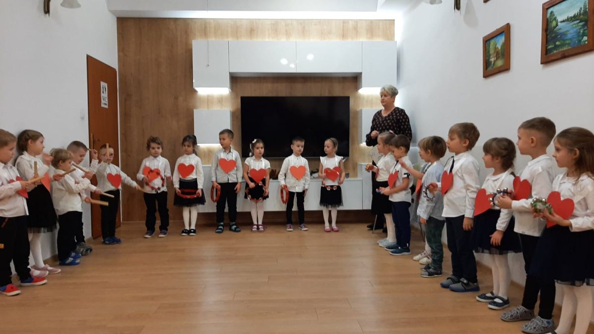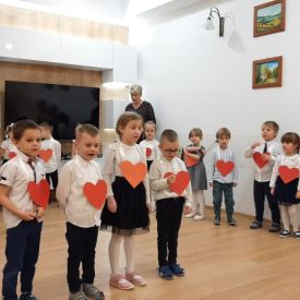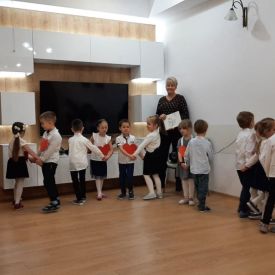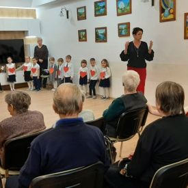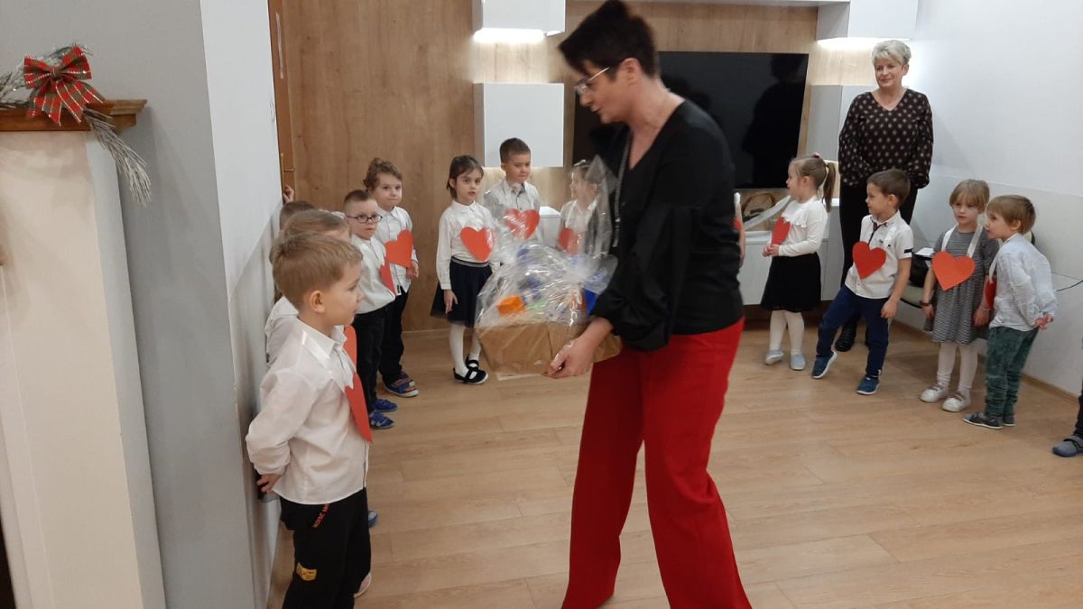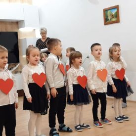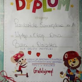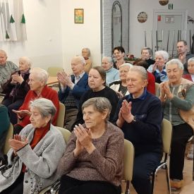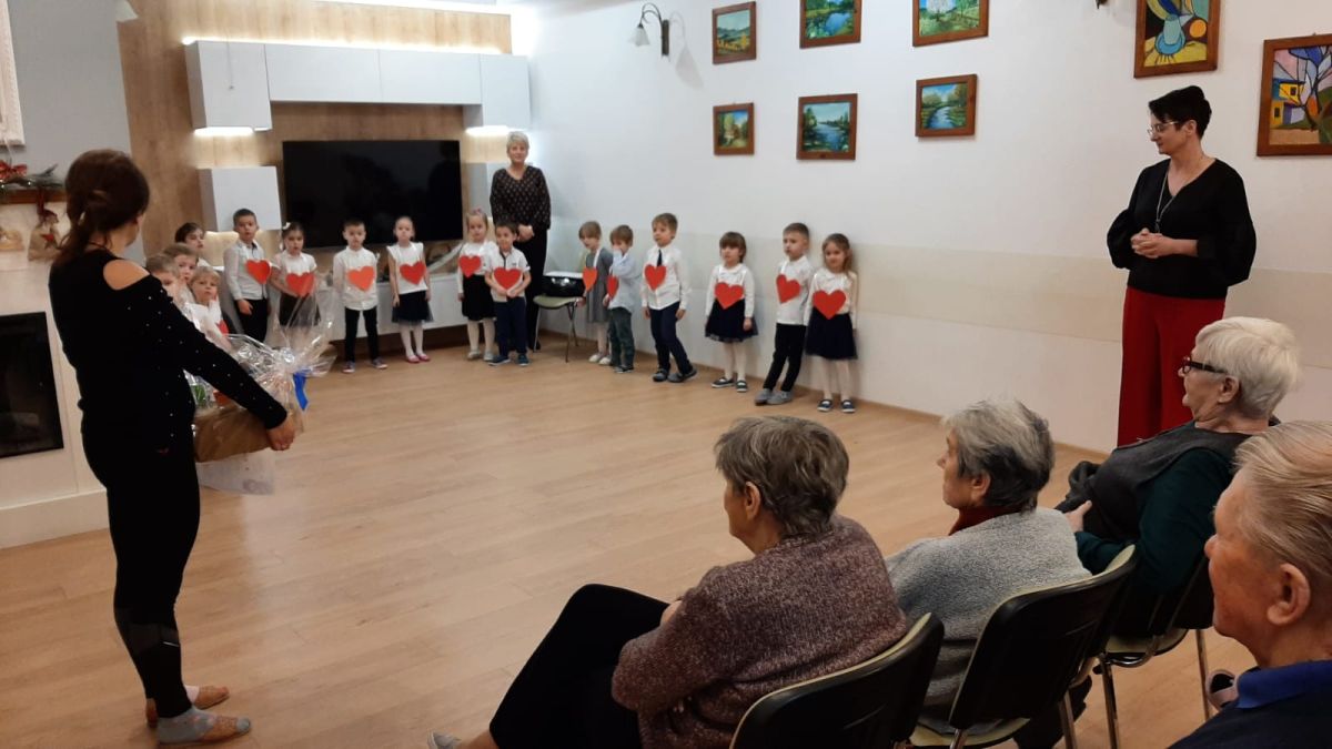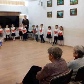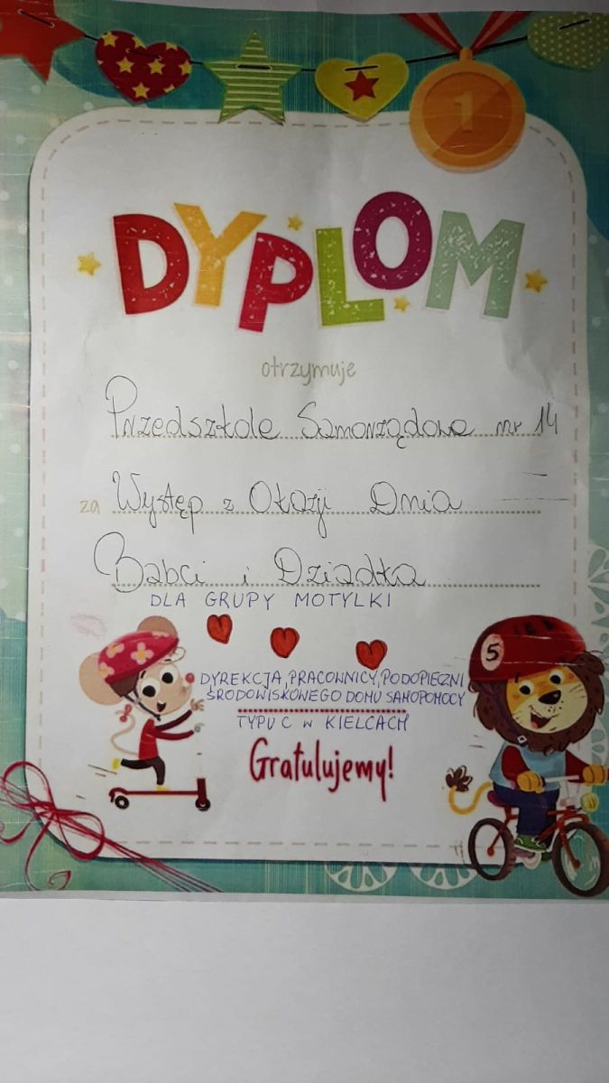 Przedszkolaki z grupy Motylków przedstawiły podopiecznym Środowiskowego Domu Samopomocy Typu C w Kielcach montaż słowno- muzyczny z okazji Dnia Babci i Dziadka. Przedstawienie dostarczyło wszystkim zebranym wiele pozytywnych wrażeń. Uroczysty nastrój sprawił, że wszyscy obecni włączyli się do wspólnej zabawy razem z dziećmi. Nie zabrakło również życzeń oraz upominków, które otrzymali mali aktorzy. Na koniec dzieci za piękny występ dostały dyplom uznania oraz wielkie brawa. To był miły dzień, w którym dzieci wykazały się właściwą postawą i w piękny sposób wyraziły szacunek do osób starszych.