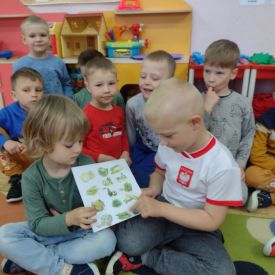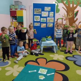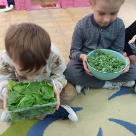 7.Podczas zajęć „Zdrowie ma kolor zielony” poznały wartość odżywcze warzyw zielonych, na podstawie opowiadana Cz. Janczarskiego „Bieg z przeszkodami” poznały właściwości szpinaku.