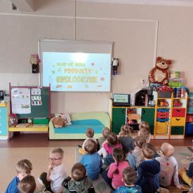 1. Oglądały film edukacyjny „Skąd się biorą produkty ekologiczne?”.